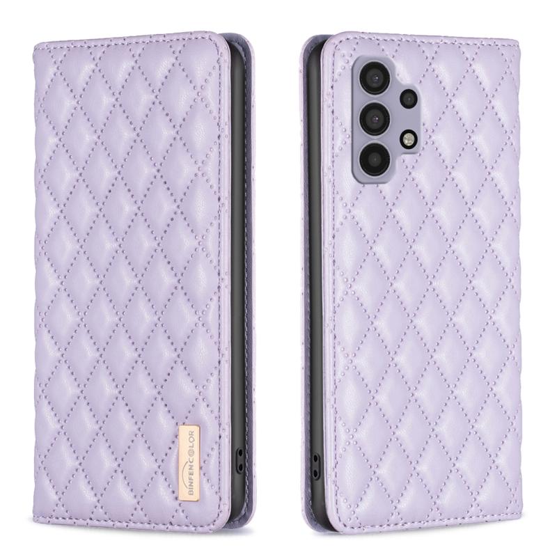 Θήκη τηλεφώνου Samsung Galaxy A32 5G, Δερμάτινη, Πτυσσόμενη, Μαγνητική, με σχέδιο Διαμαντόπλεγμα (Μωβ)