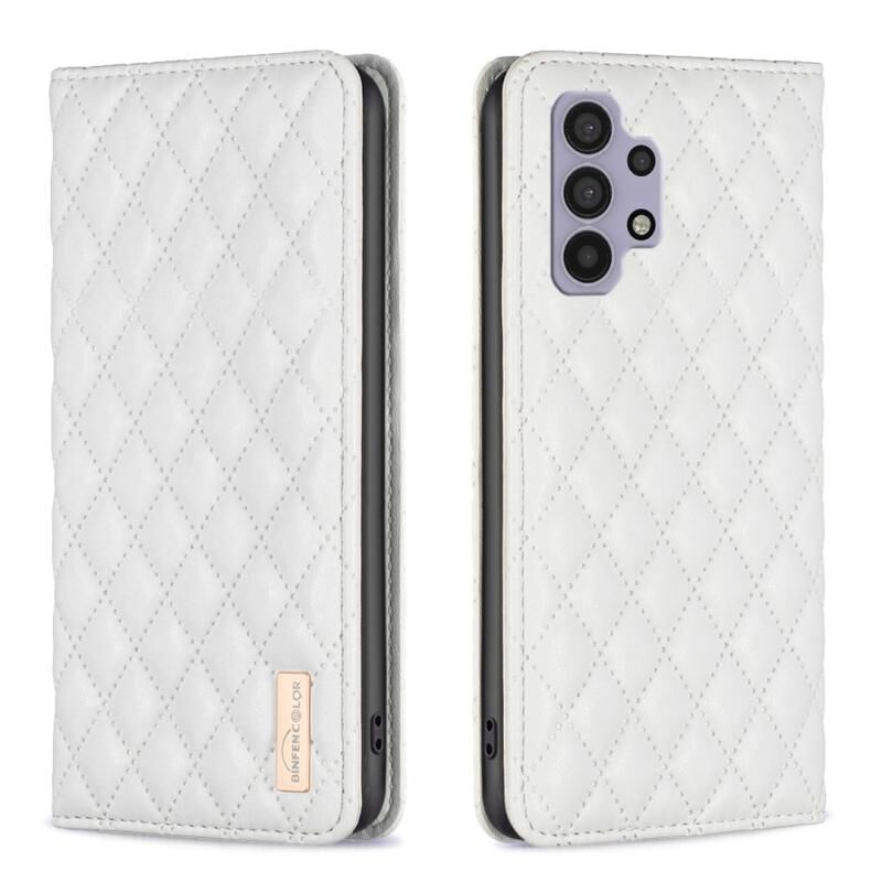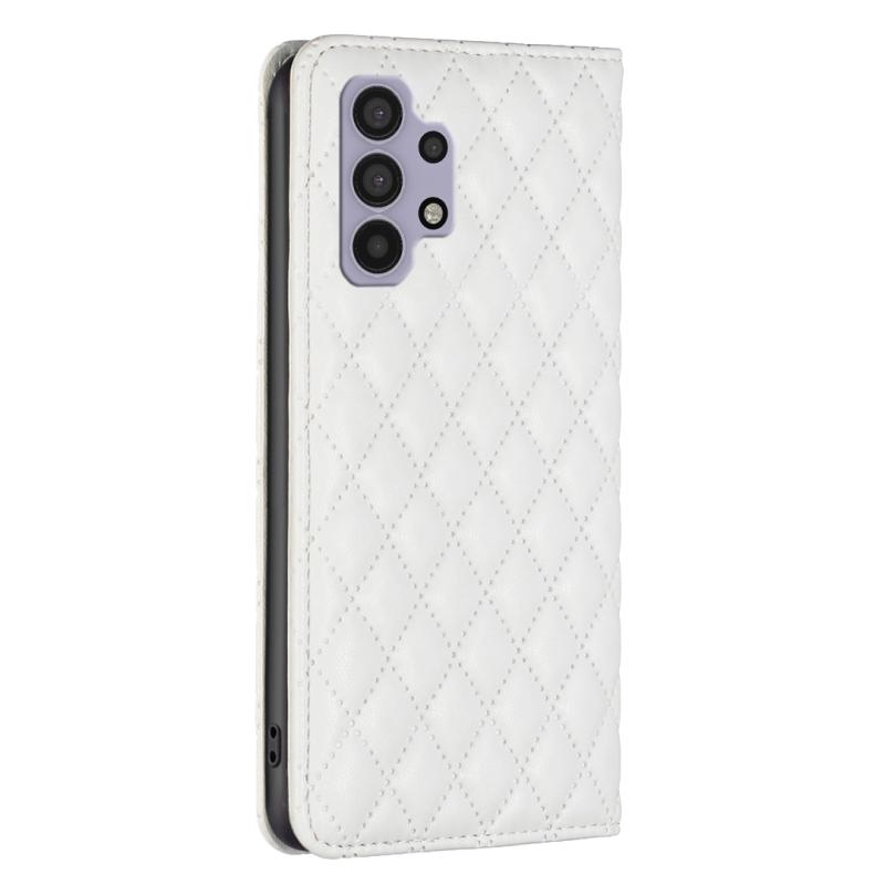 Θήκη τηλεφώνου Samsung Galaxy A32 5G, Δερμάτινη, Πτυσσόμενη, Μαγνητική, με σχέδιο Διαμαντόπλεγμα (Λευκό)