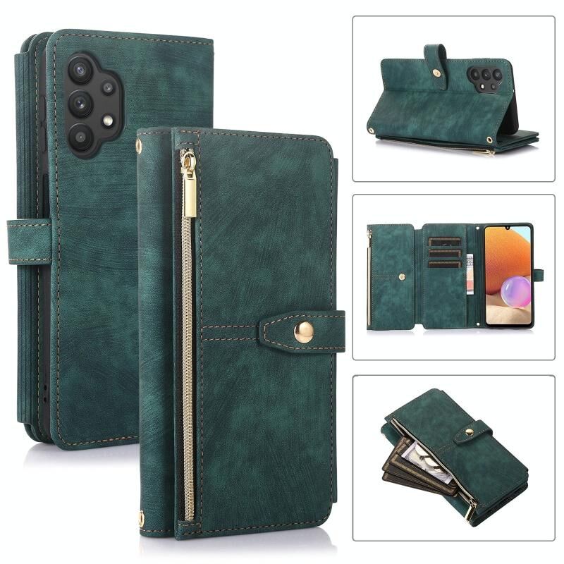 Για Samsung Galaxy A32 5G Dream 9-κάρτα πορτοφόλι φερμουάρ τσάντα δερμάτινη θήκη τηλεφώνου (πράσινο)