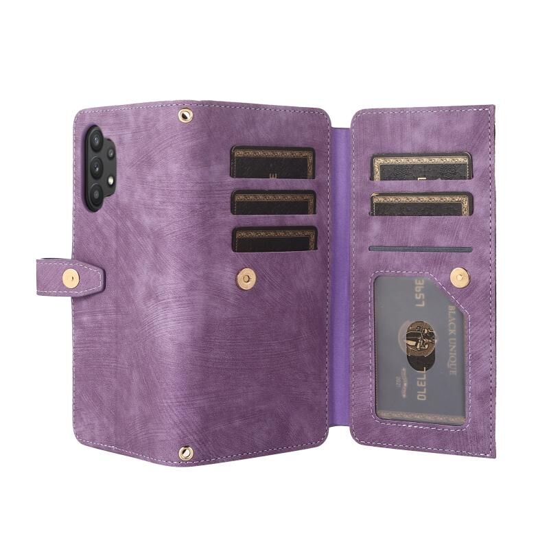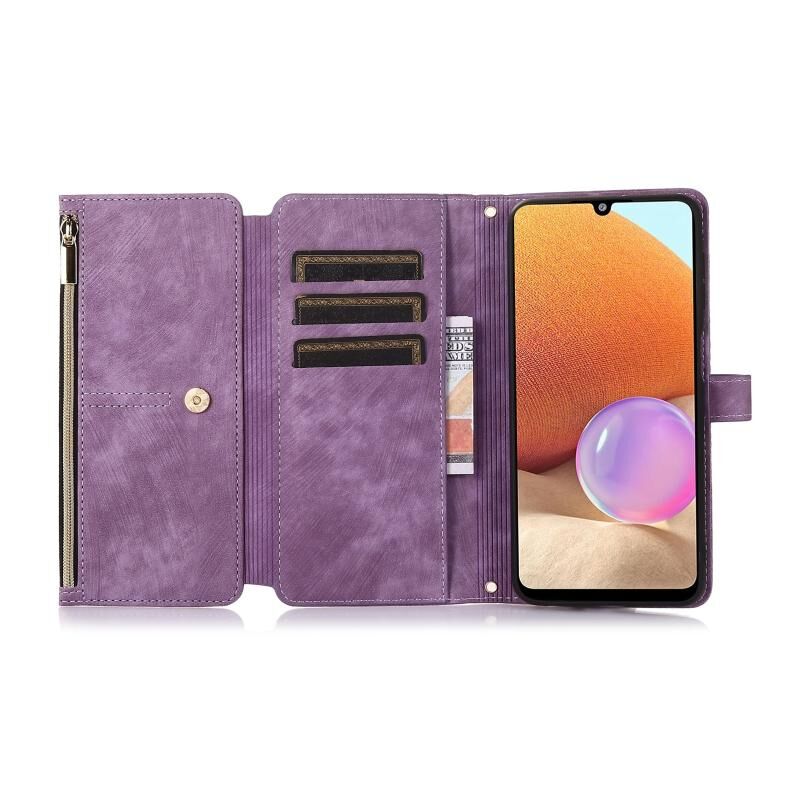 Για Samsung Galaxy A32 5G Dream 9-Card πορτοφόλι φερμουάρ τσάντα δέρμα τηλέφωνο υπόθεση (Μωβ)