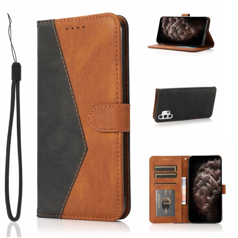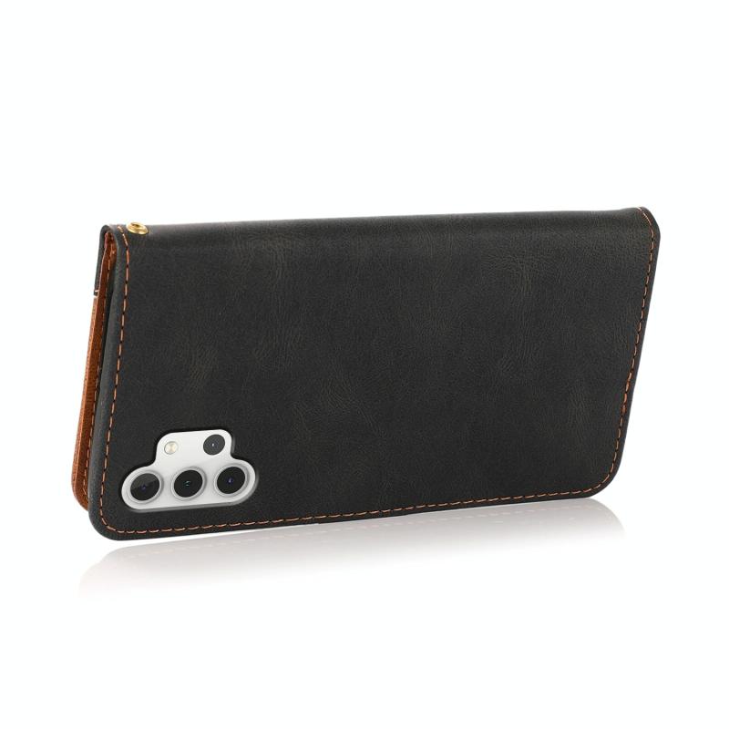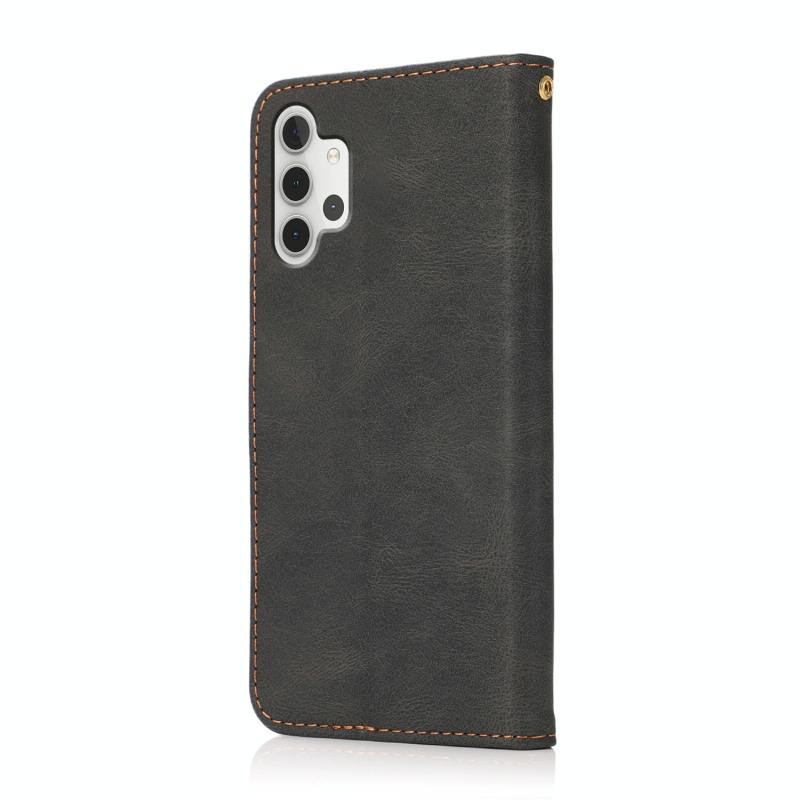 Θήκη τηλεφώνου Samsung Galaxy A32 5G από δέρμα με διχρωμία ραφής (Μαύρο καφέ)