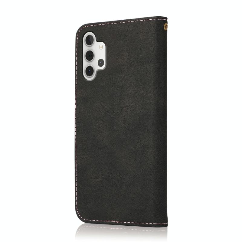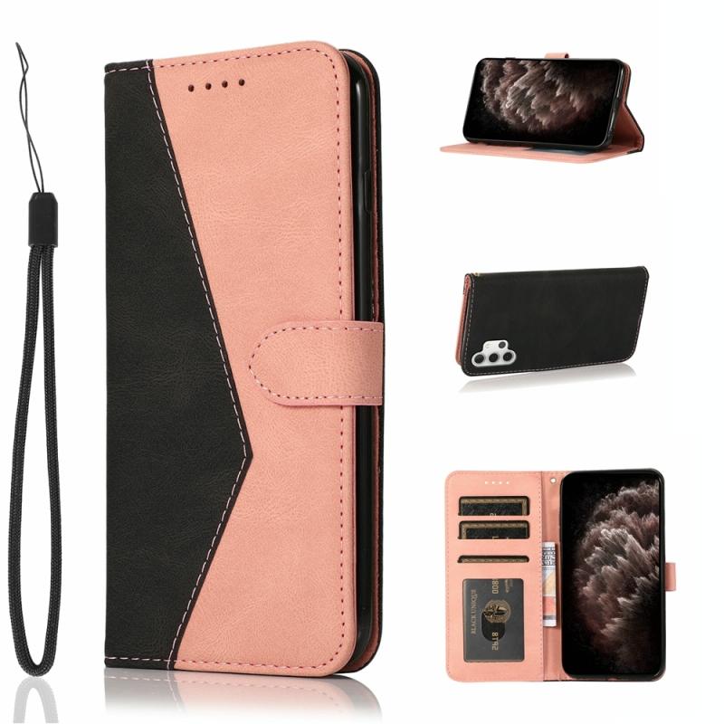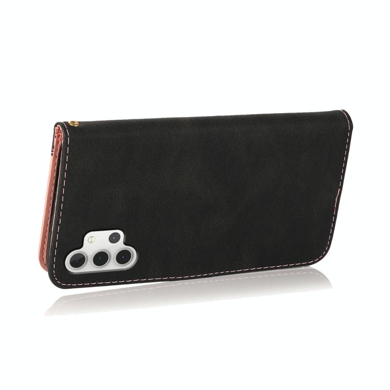 Θήκη τηλεφώνου Samsung Galaxy A32 5G από δέρμα με διχρωμία ραφής (Μαύρο Ροζ Χρυσό)