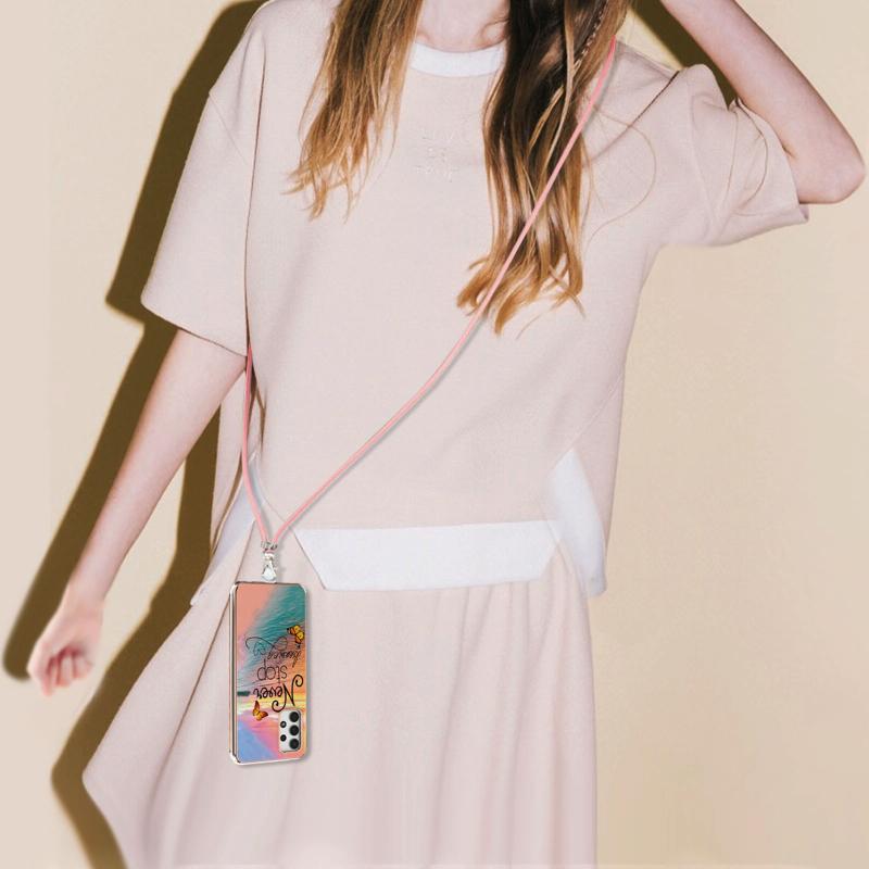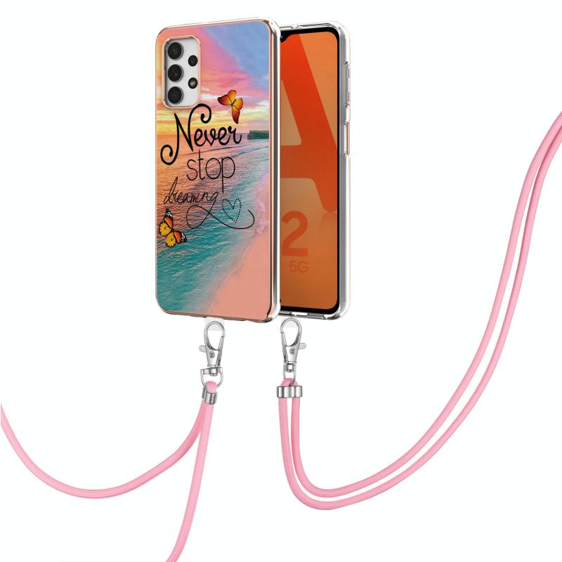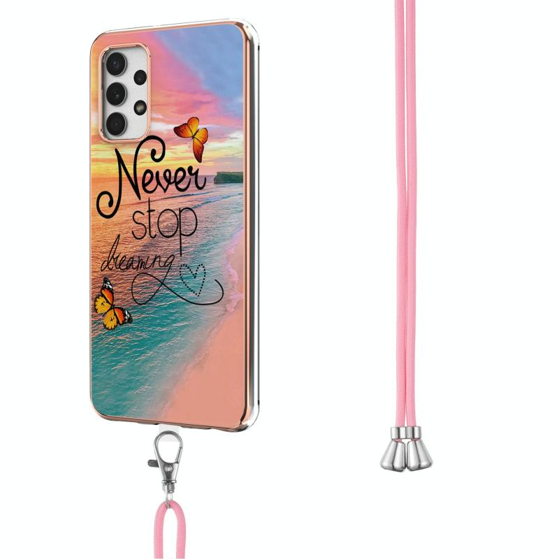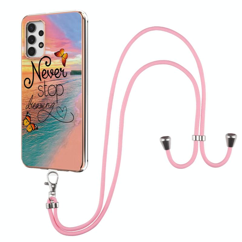 For Samsung Galaxy A32 5G Electroplating Pattern IMD TPU Shockproof Case with Neck Lanyard(Dream Chasing Butterfly)