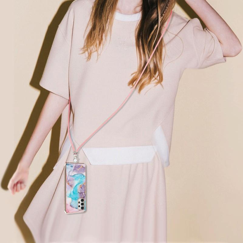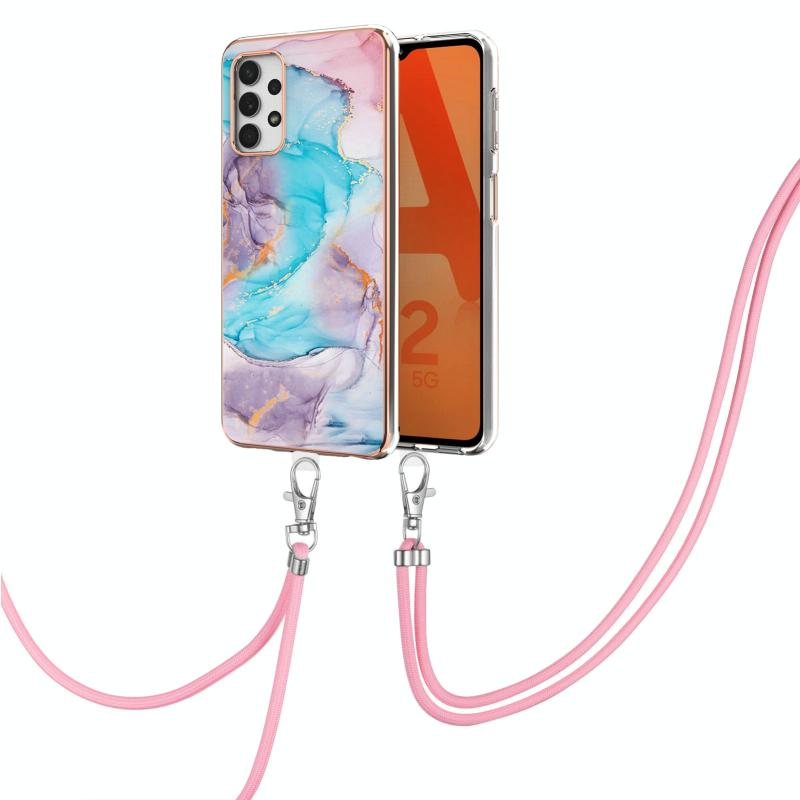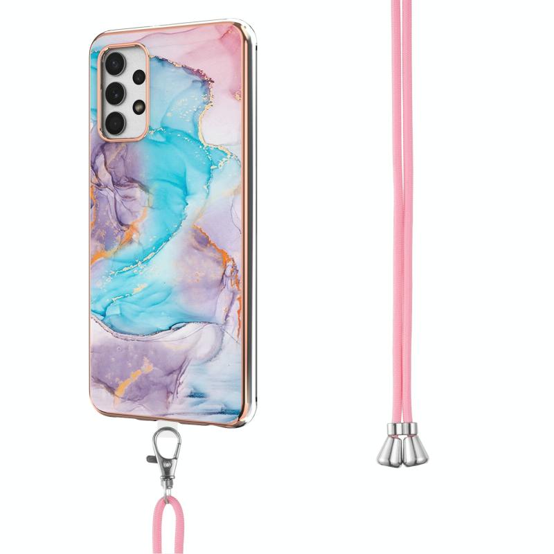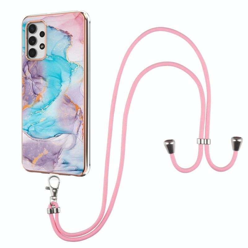 For Samsung Galaxy A32 5G Electroplating Pattern IMD TPU Shockproof Case with Neck Lanyard(Milky Way Blue Marble)