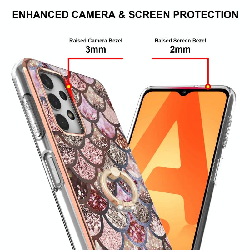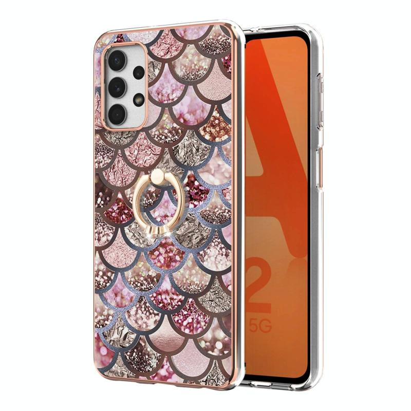Θήκη για Samsung Galaxy A32 5G με Γαλβανισμένο Σχέδιο IMD TPU Αντικραδασμική με Δαχτυλίδι Στήριξης από Κρύσταλλα (Γαλαξιακό Μπλε Μάρμαρο)
