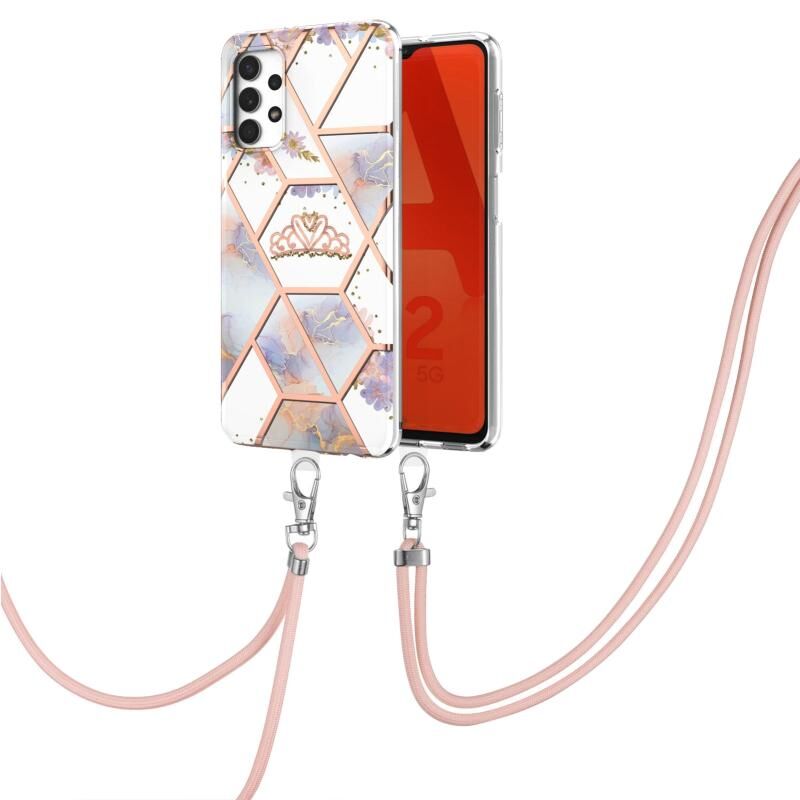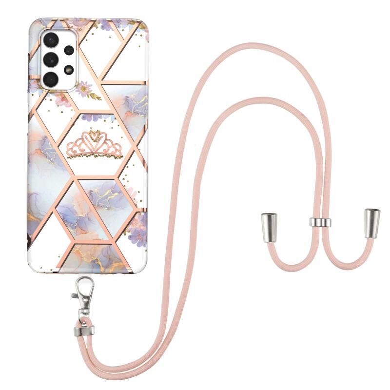 Θήκη προστασίας TPU με ενσωματωμένο κορδόνι (Imperial Crown) για Samsung Galaxy A32 5G με γαλβανισμό, συνδυασμό μαρμάρου και λουλουδιών, αντικραδασμική.