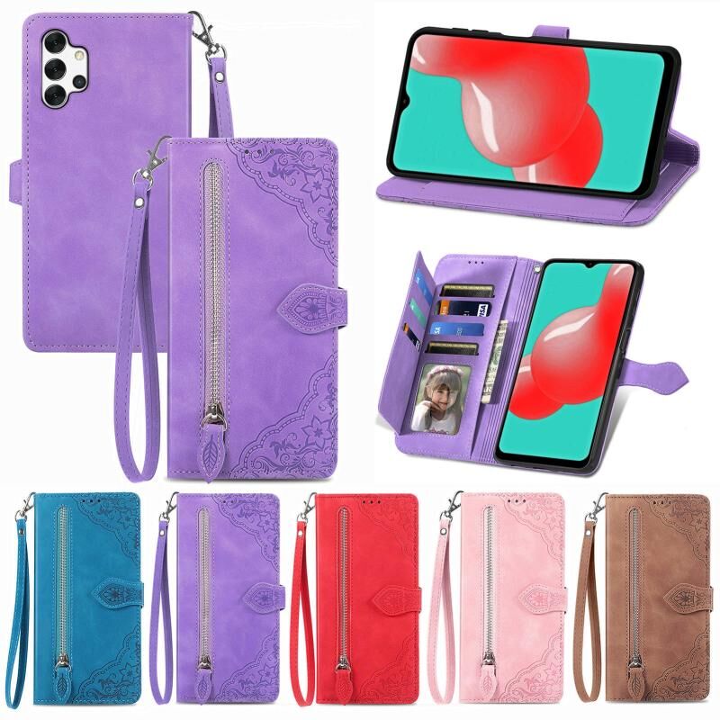 Θήκη κινητού Samsung Galaxy A32 5G από δέρμα με ανάγλυφο λουλούδι, αντικραδασμική (Καφέ)