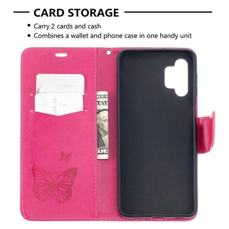 Θήκη Samsung Galaxy A32 5G με ανάγλυφο σχέδιο δύο πεταλούδων, οριζόντια, από δερματίνη PU με βάση στήριξης, θήκη για κάρτες, πορτοφόλι & λουρί (Πράσινο)