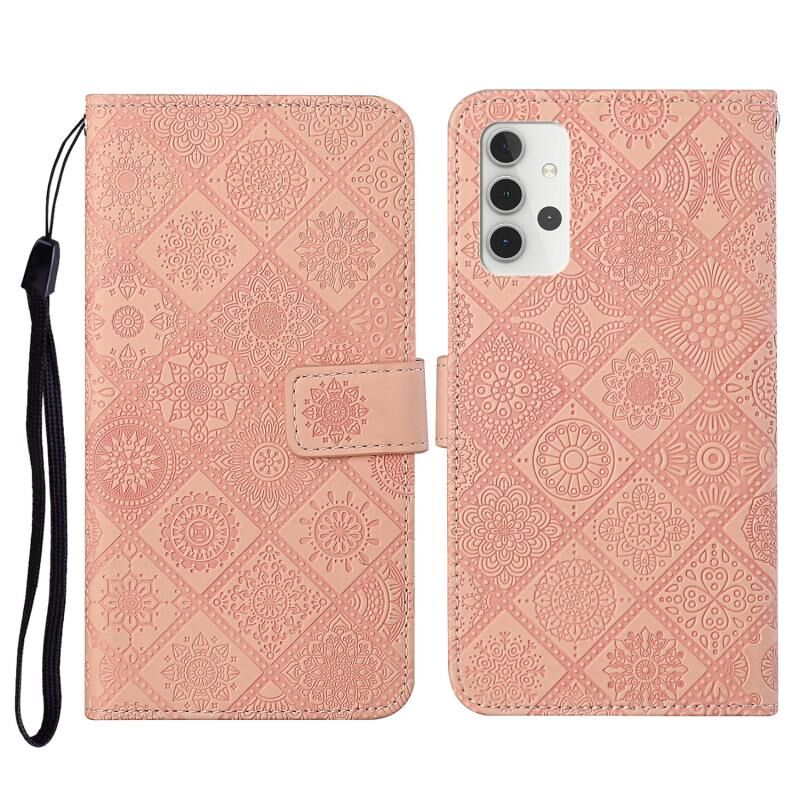 Για Samsung Galaxy A32 5G Ethnic Style ανάγλυφο μοτίβο οριζόντια Flip δερμάτινη θήκη με κάτοχο & υποδοχές για κάρτες & πορτοφόλι & κορδόνι (ροζ)