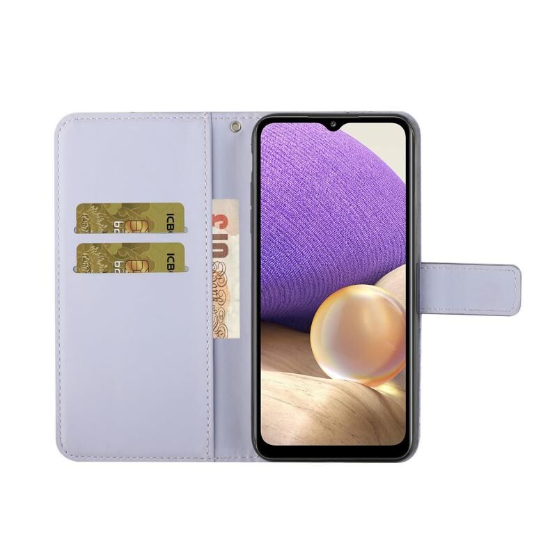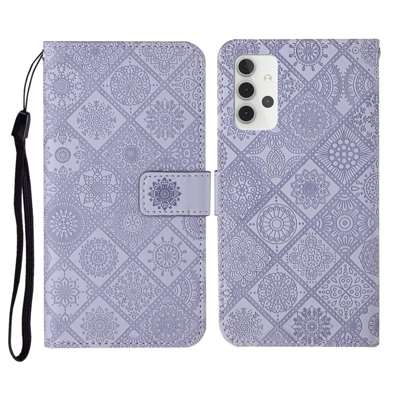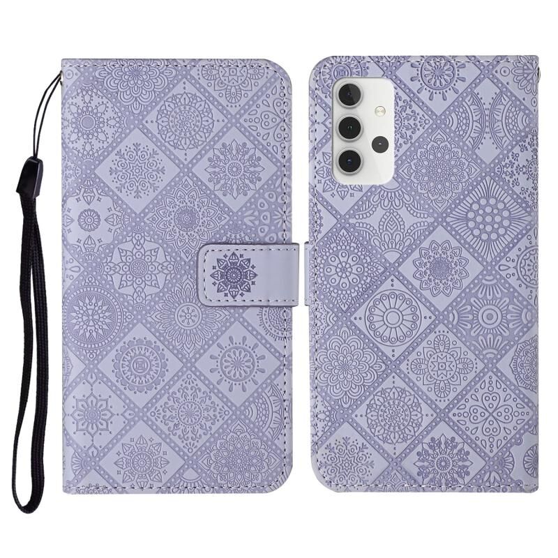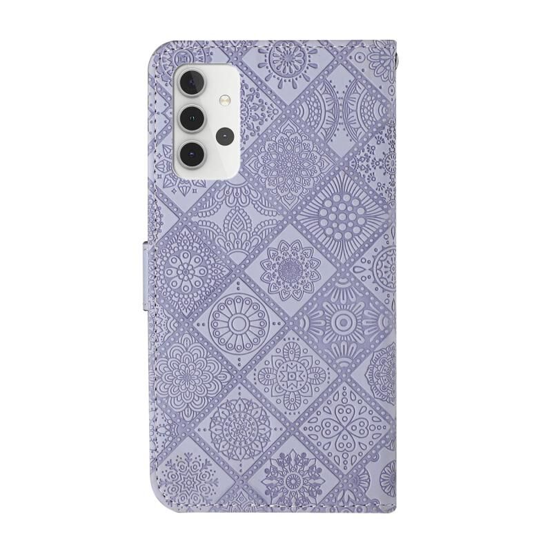 Για Samsung Galaxy A32 5G Ethnic Style ανάγλυφο μοτίβο οριζόντια Flip δερμάτινη θήκη με κάτοχο & υποδοχές για κάρτες & πορτοφόλι & κορδόνι (μωβ)