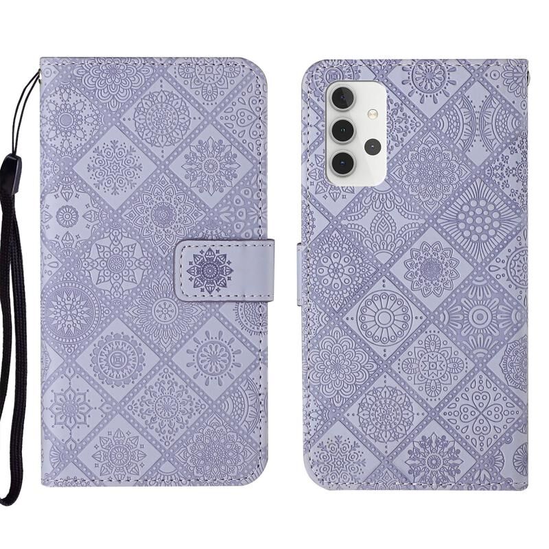 Για Samsung Galaxy A32 5G Ethnic στυλ ανάγλυφο μοτίβο δερμάτινη θήκη τηλεφώνου (μωβ)