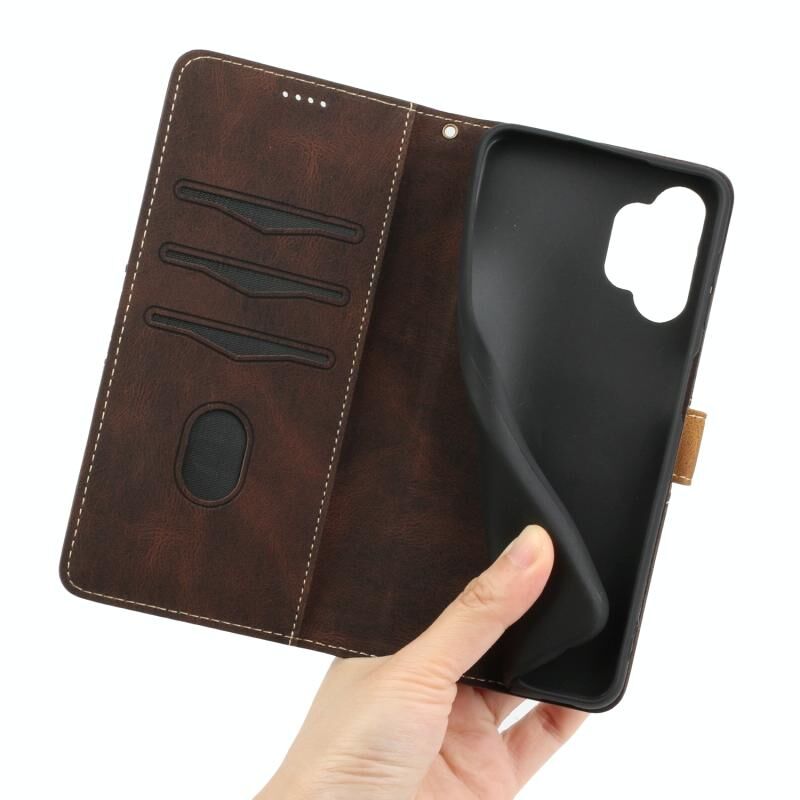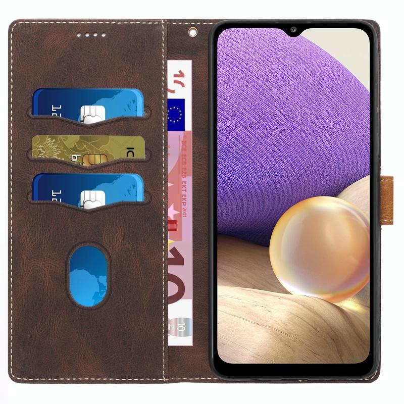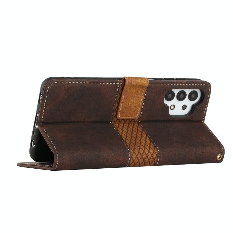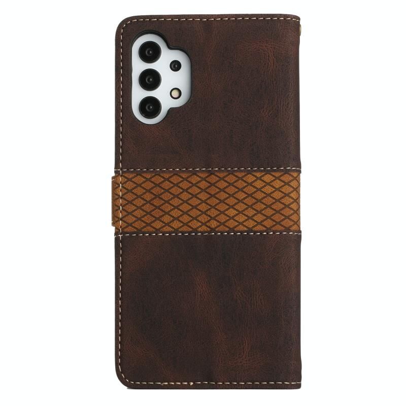 Για Samsung Galaxy A32 5G 5G Grid ραφή δερμάτινη θήκη τηλεφώνου με κορδόνι (Καφέ)