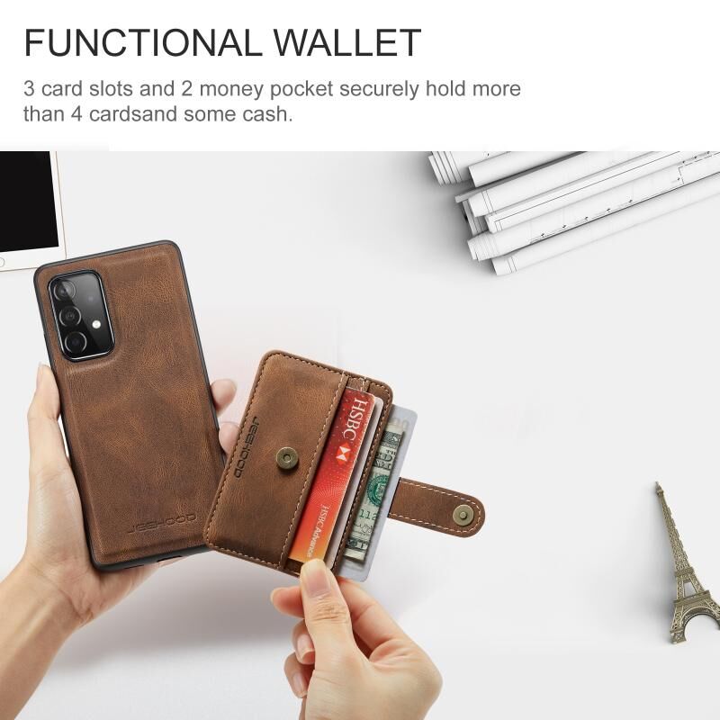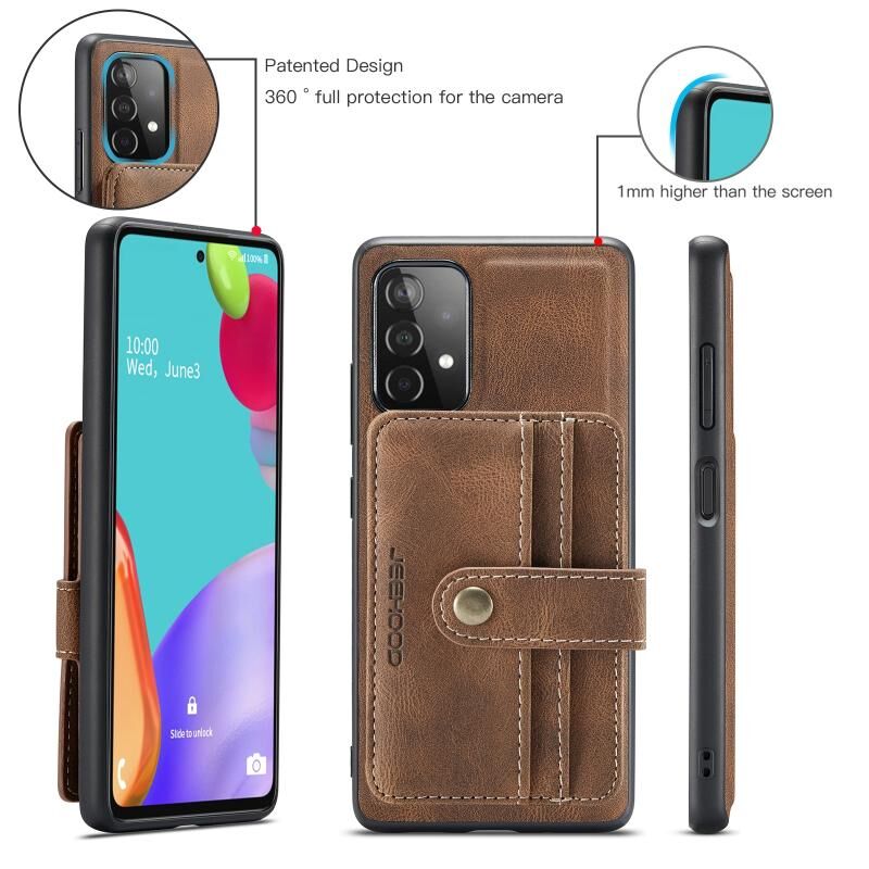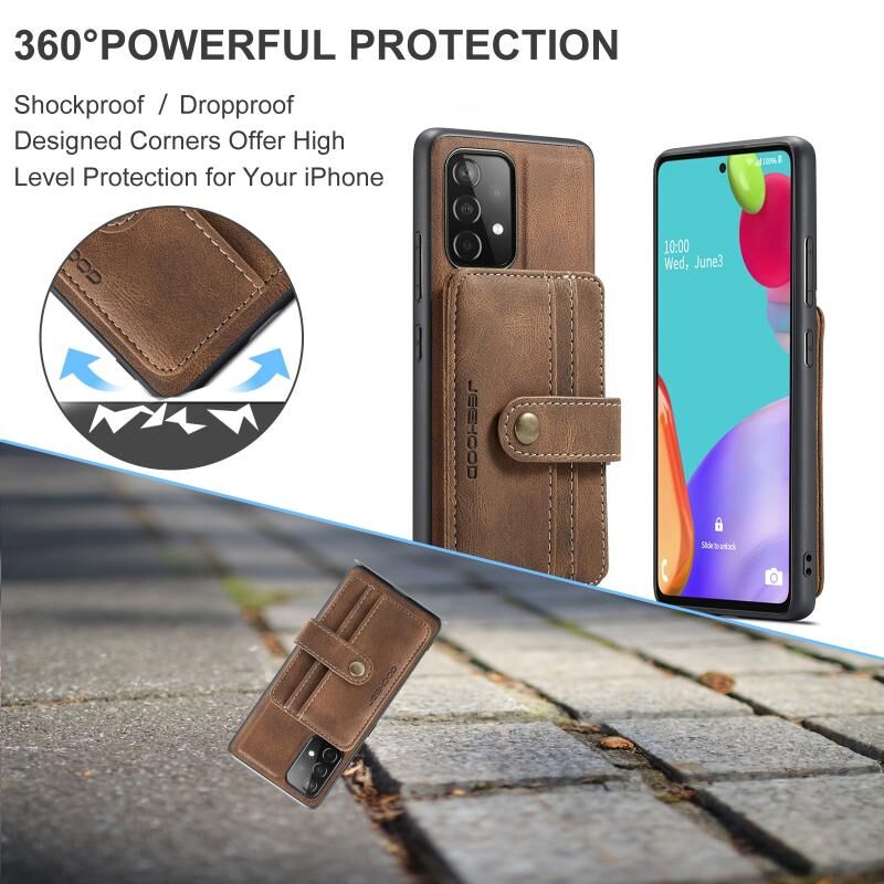 Για Samsung Galaxy A32 5G JEEHOOD Θήκη Τηλεφώνου με Αντικλεπτική Προστασία RFID, Μαγνητική από PU + TPU με Θήκη Καρτών (Καφέ) (JEEHOOD)