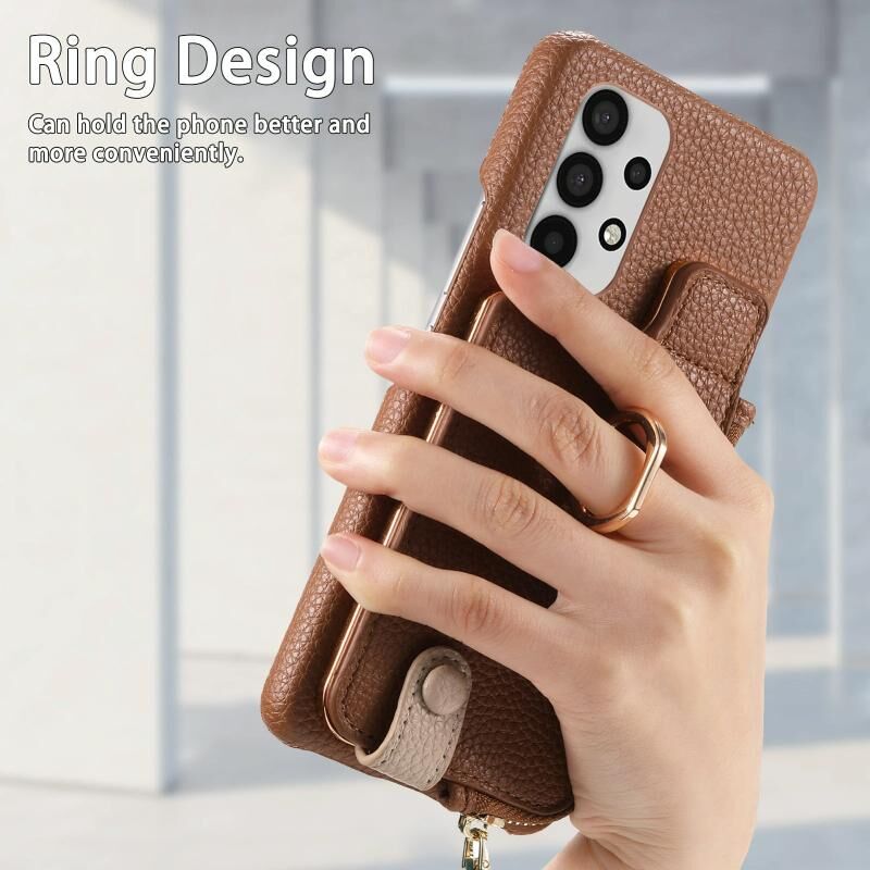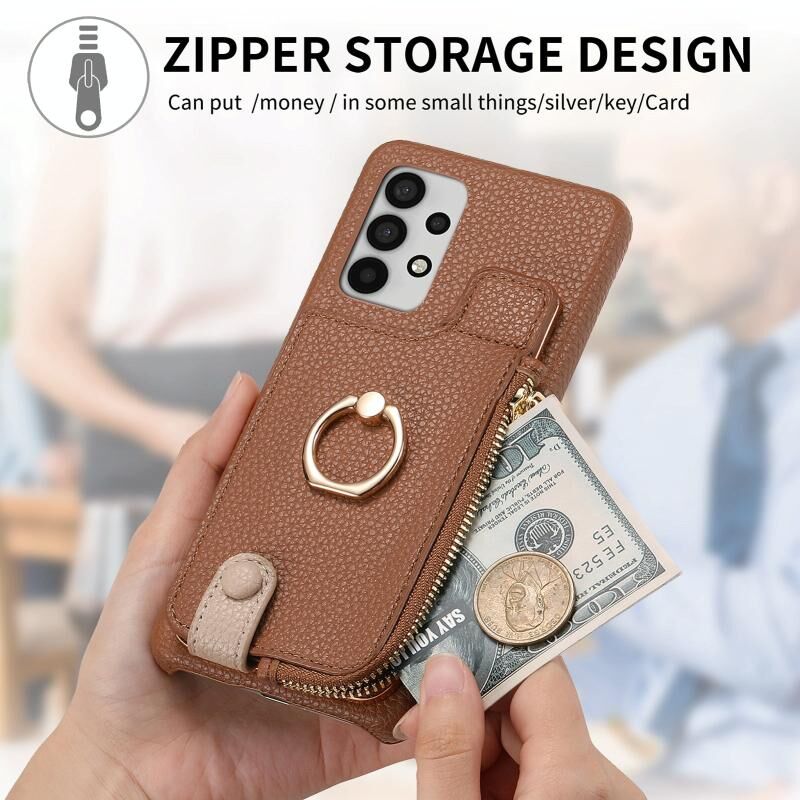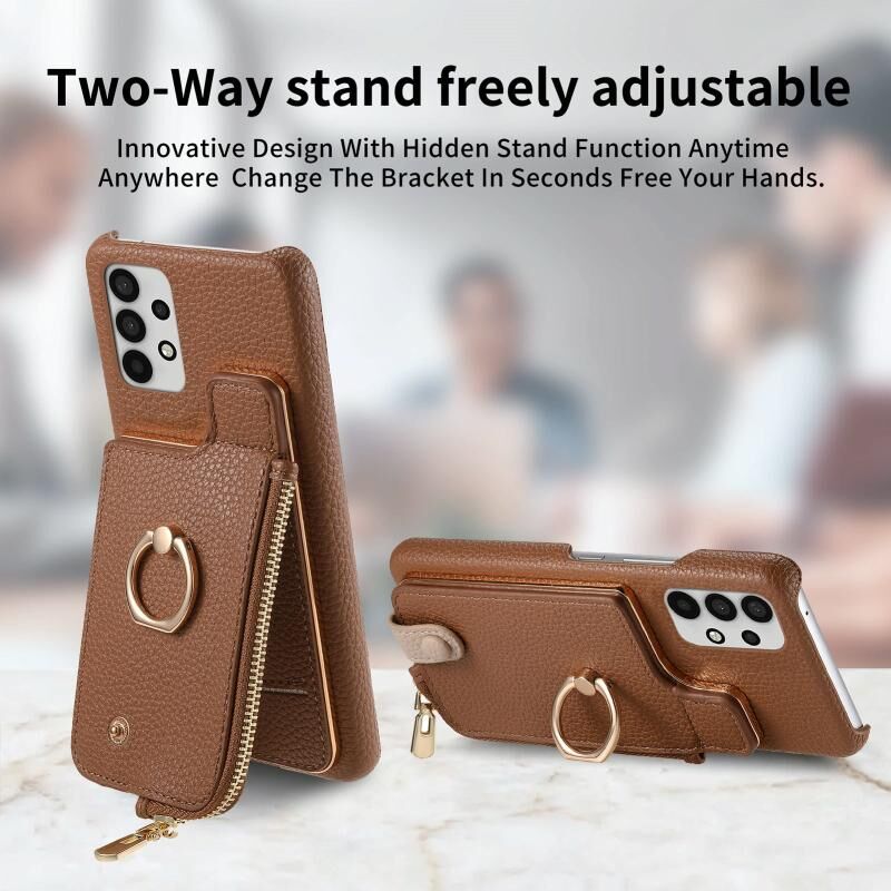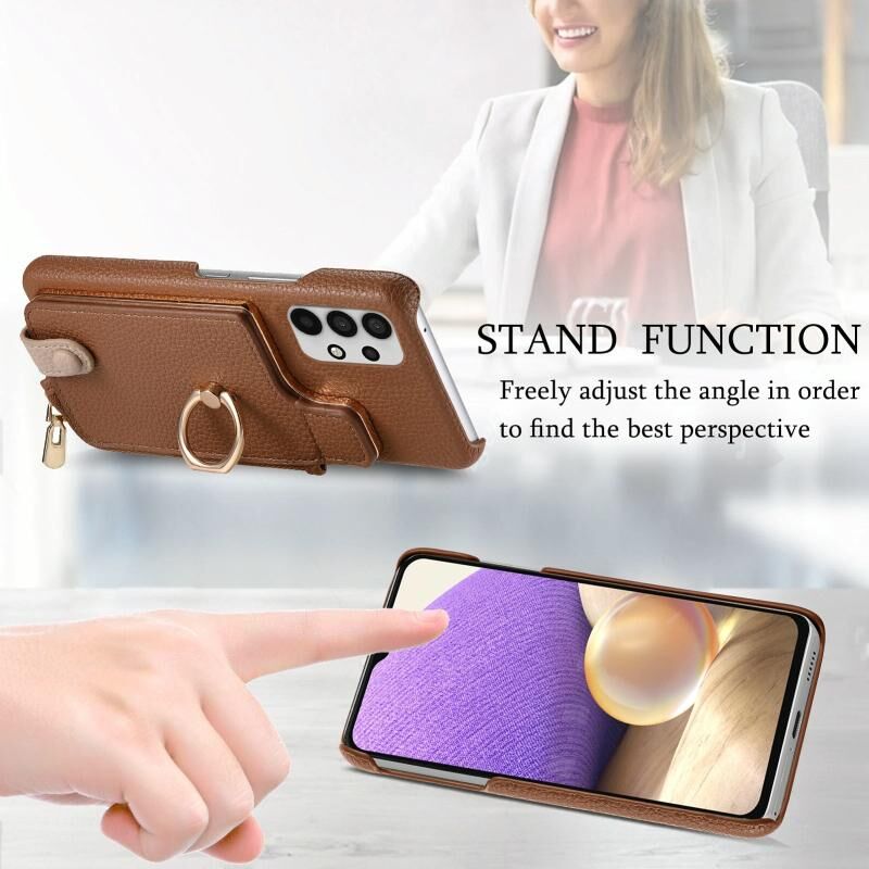 Για Samsung Galaxy A32 5G Litchi δέρμα λάδι Edge δαχτυλίδι φερμουάρ πορτοφόλι πίσω θήκη τηλεφώνου (Καφέ)