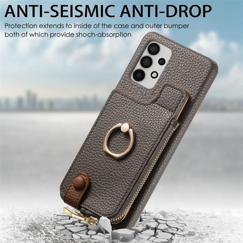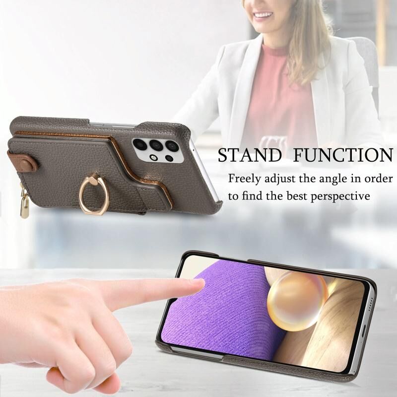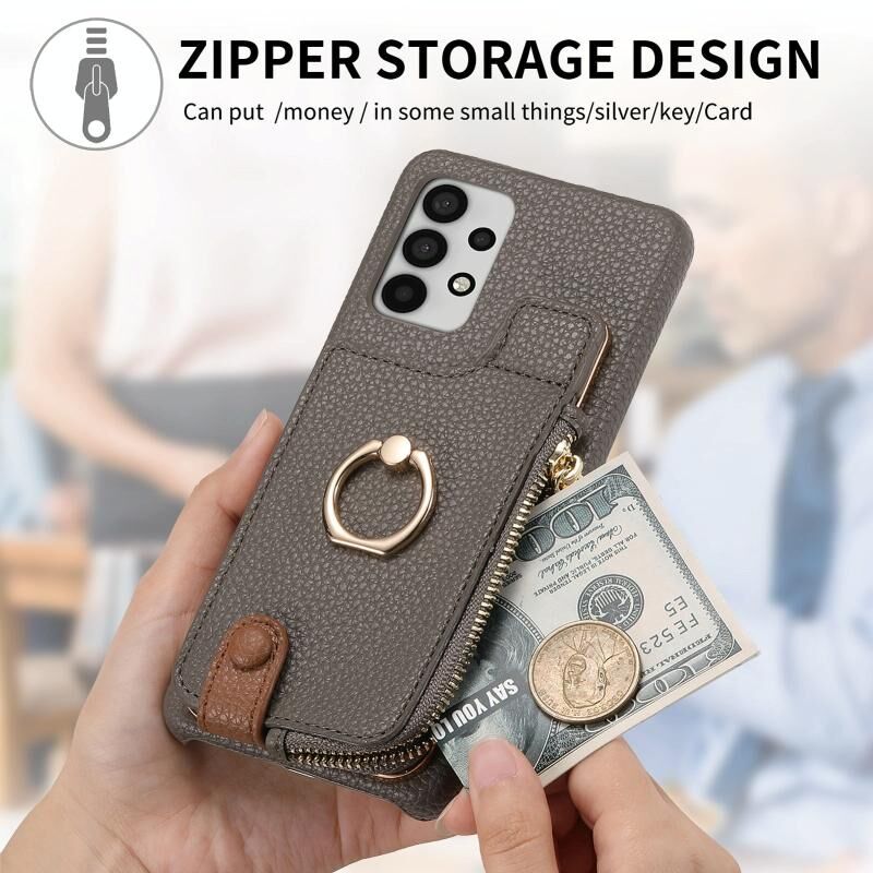 Για Samsung Galaxy A32 5G Litchi δέρμα λάδι Edge δαχτυλίδι φερμουάρ πορτοφόλι πίσω υπόθεση τηλεφώνου (γκρι)