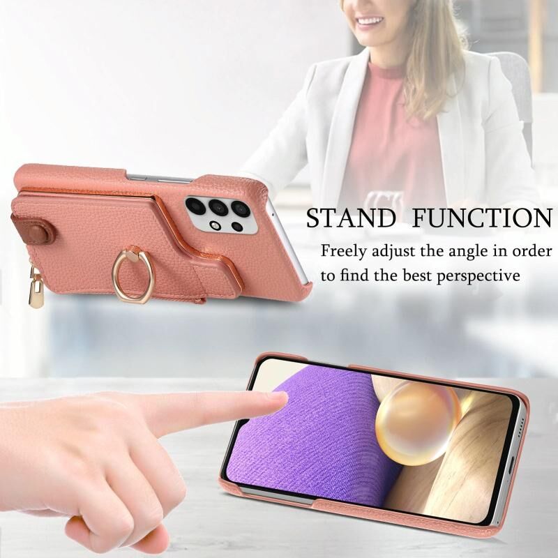 Για Samsung Galaxy A32 5G Litchi δέρμα λάδι Edge δαχτυλίδι φερμουάρ πορτοφόλι πίσω υπόθεση τηλεφώνου (ροζ)