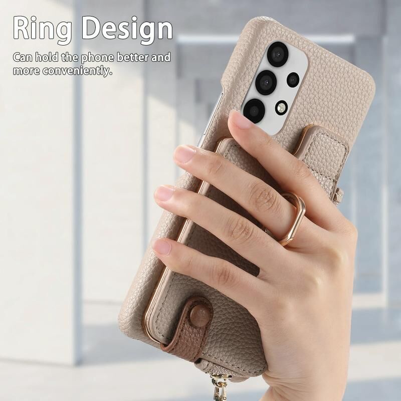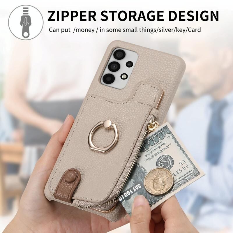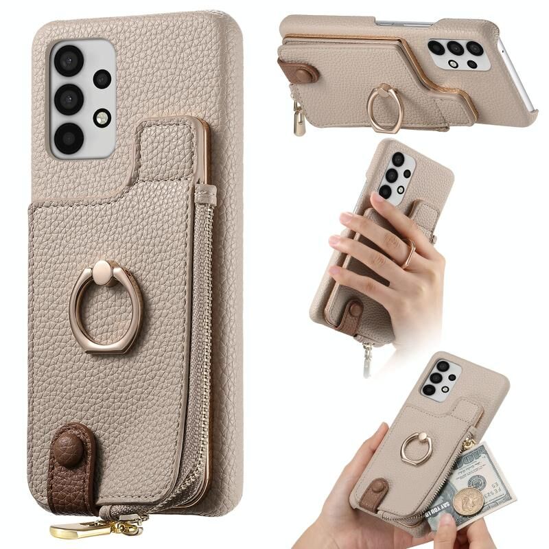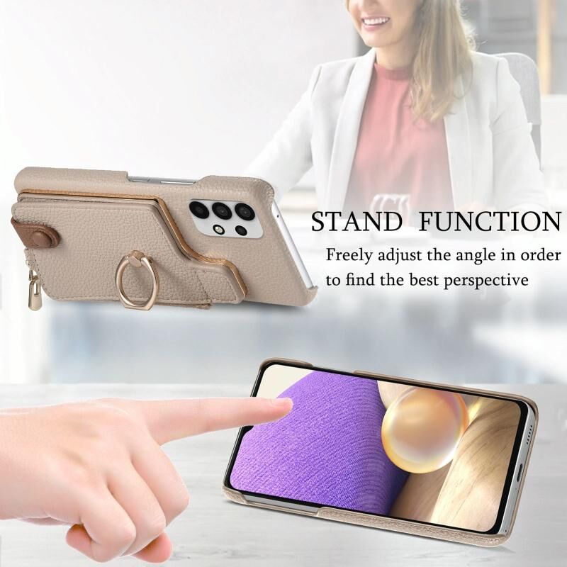 Για Samsung Galaxy A32 5G Litchi δέρμα λάδι Edge δαχτυλίδι φερμουάρ πορτοφόλι πίσω υπόθεση τηλεφώνου (λευκό)