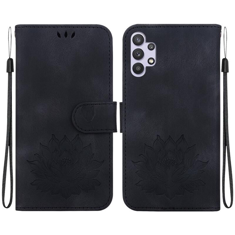 For Samsung Galaxy A32 5G Lotus Embossed Leather Phone Case(Black)