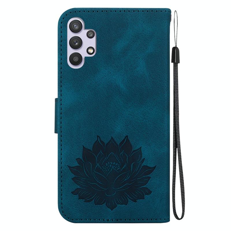 For Samsung Galaxy A32 5G Lotus Embossed Leather Phone Case(Dark Blue)