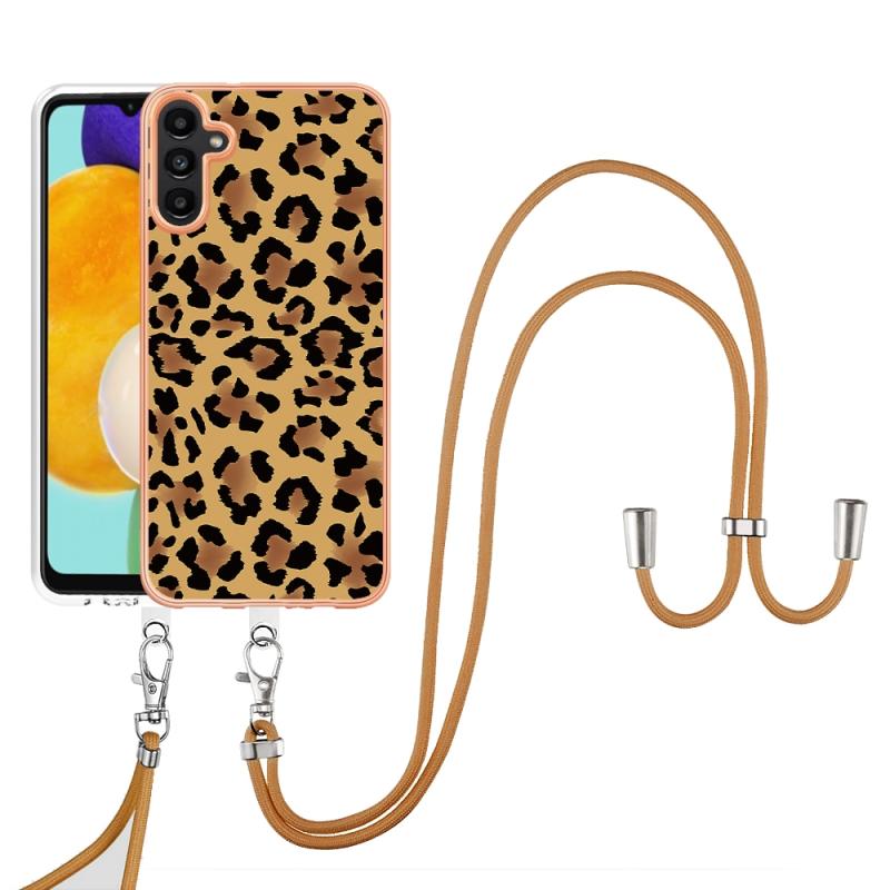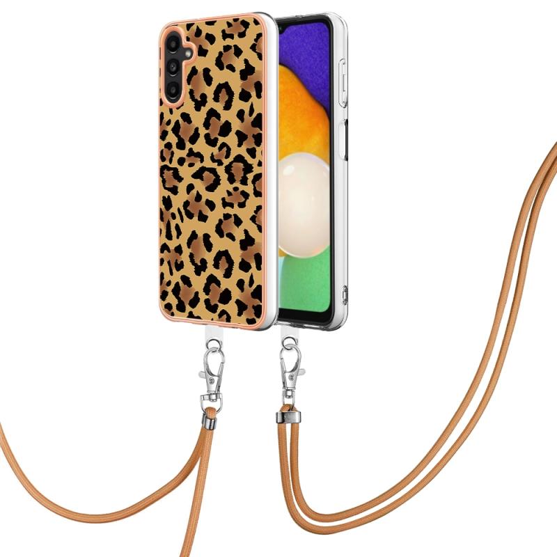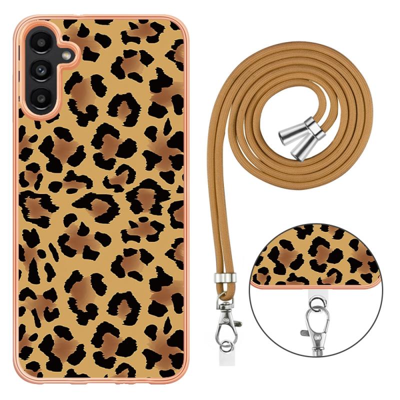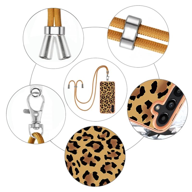 For Samsung Galaxy A32 5G / M32 5G Electroplating Dual-side IMD Phone Case with Lanyard(Leopard Print)