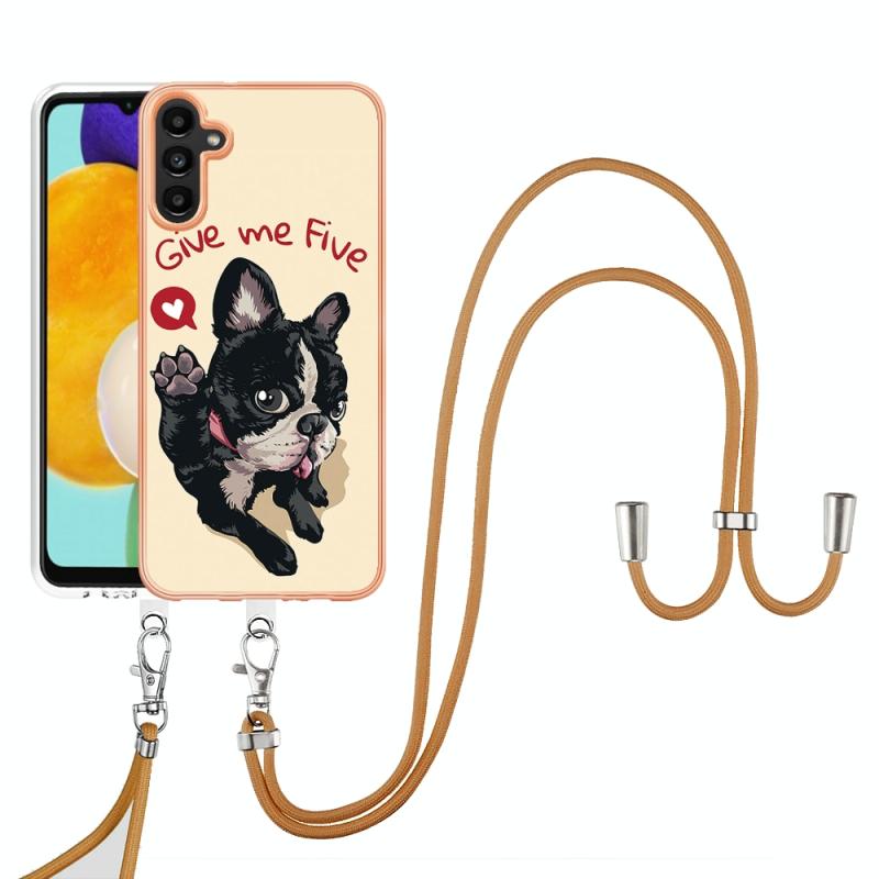 For Samsung Galaxy A32 5G / M32 5G Electroplating Dual-side IMD Phone Case with Lanyard(Lucky Dog)