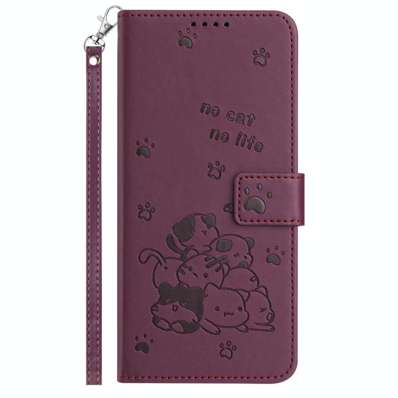 Θήκη δερμάτινη για Samsung Galaxy A32 5G / M32 5G με ανάγλυφο σχέδιο γατάκι και λουρί (Μωβ)