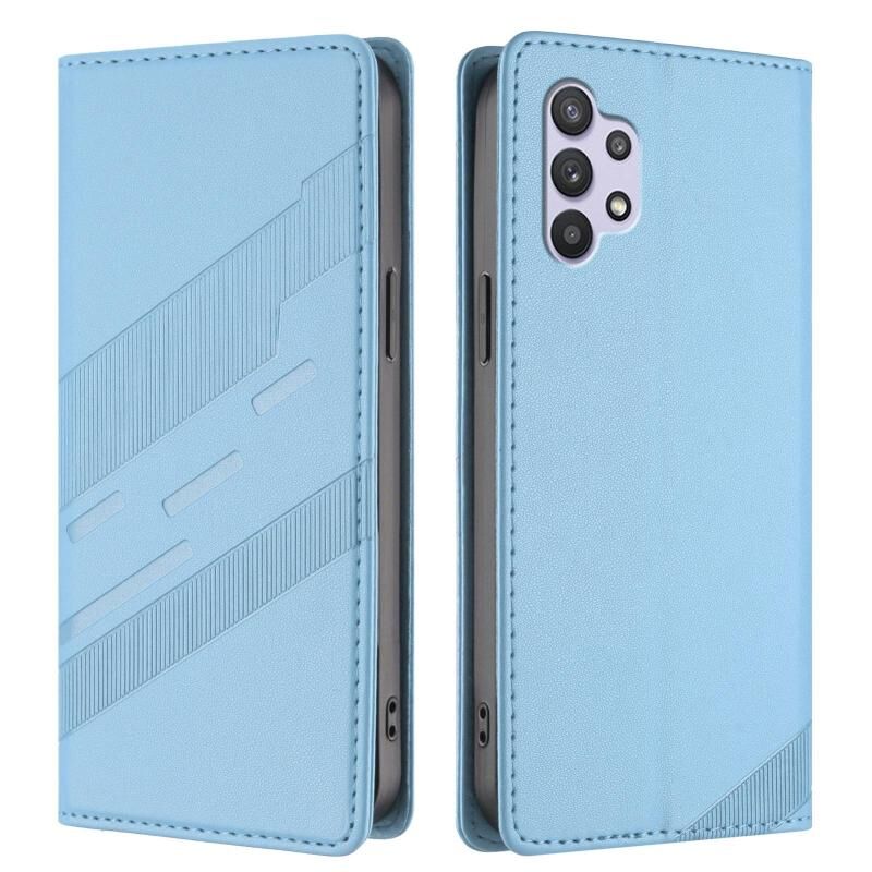 Θήκη τηλεφώνου Samsung Galaxy A32 5G / M32 5G, δερμάτινη, ανάγλυφη, πολυλειτουργική, τύπου πορτοφολιού (Μαύρο)