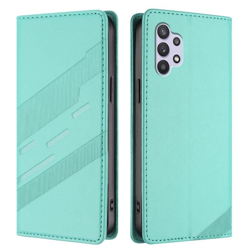 Θήκη τηλεφώνου Samsung Galaxy A32 5G / M32 5G, δερμάτινη, ανάγλυφη, πολυλειτουργική, τύπου πορτοφολιού (Μέντας πράσινο)