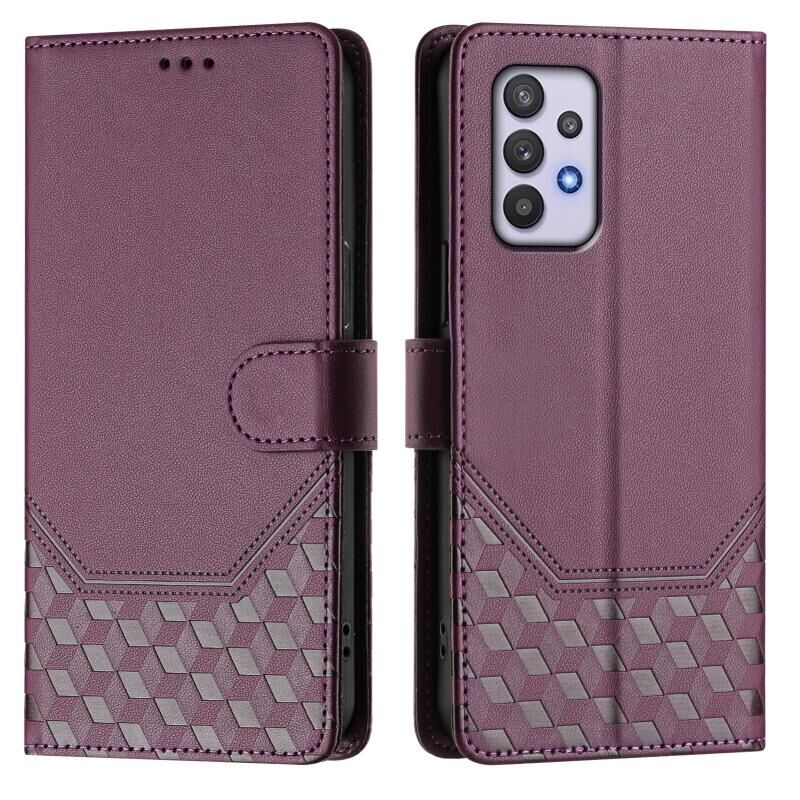 Για Samsung Galaxy A32 5G / M32 5G Honeycomb ανάγλυφη RFID δερμάτινη θήκη τηλεφώνου (Violet)