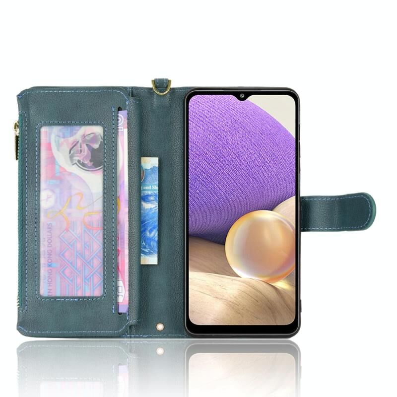 Για Samsung Galaxy A32 5G / M32 5G Litchi υφή φερμουάρ δερμάτινη θήκη τηλεφώνου (πράσινο)