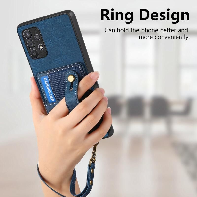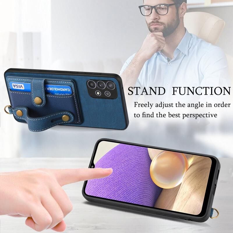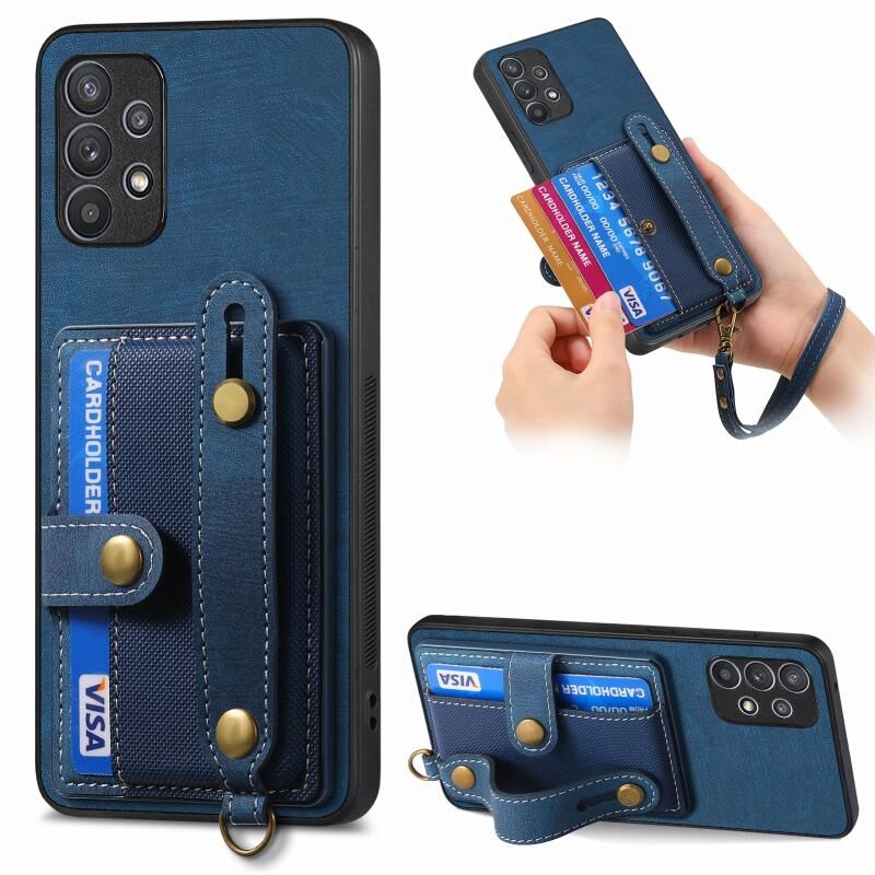 Για Samsung Galaxy A32 5G/M32 5G Retro Cross Wristband πορτοφόλι δέρμα πίσω υπόθεση τηλεφώνου (μπλε)