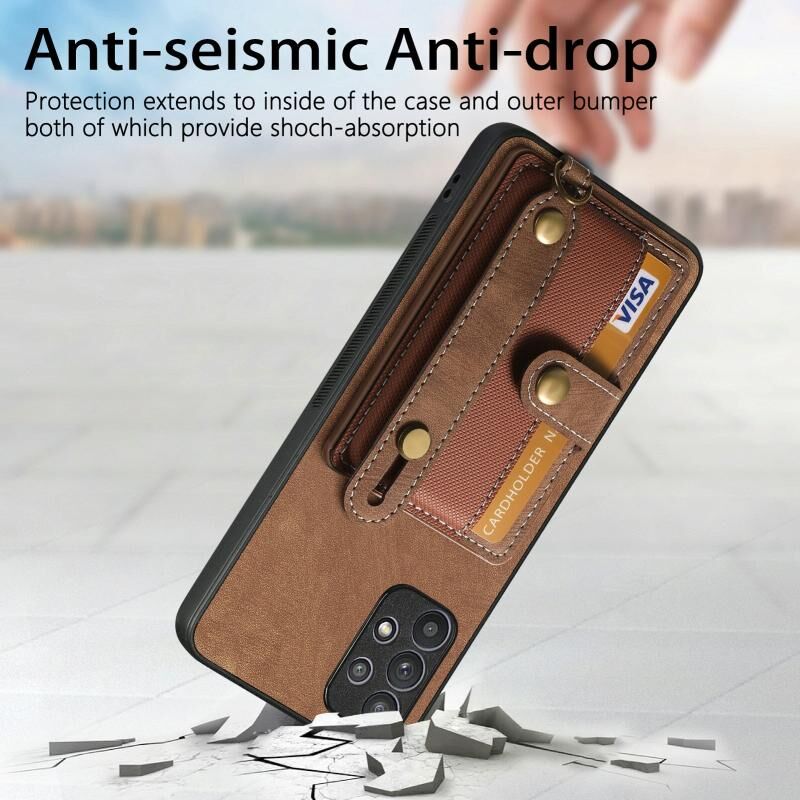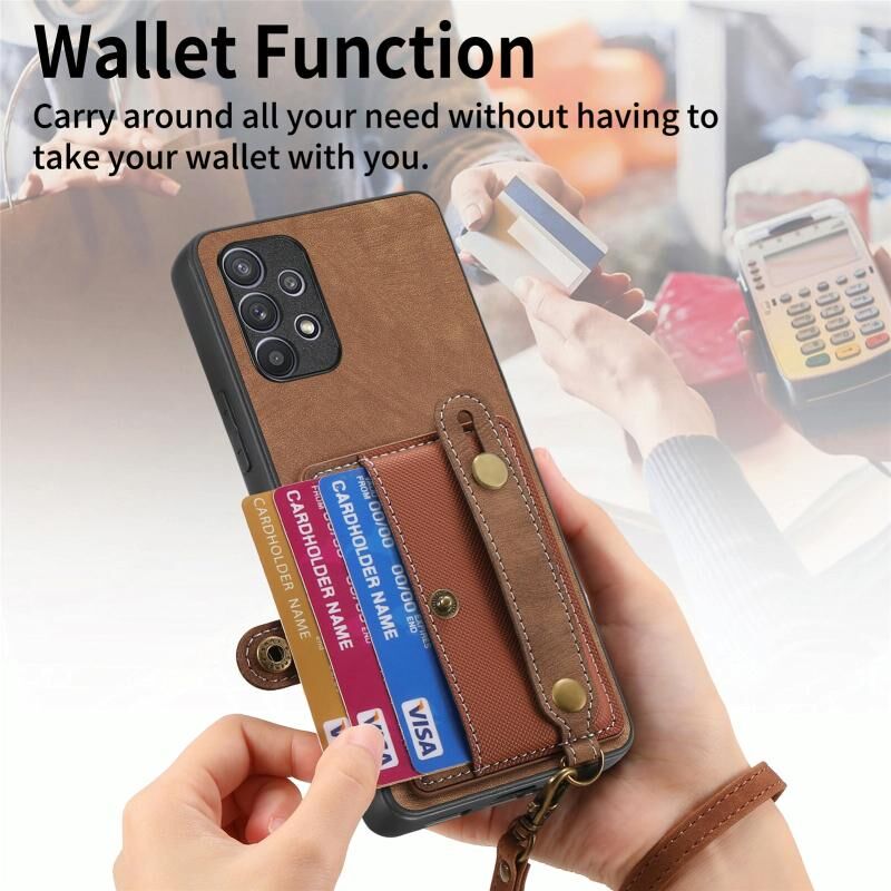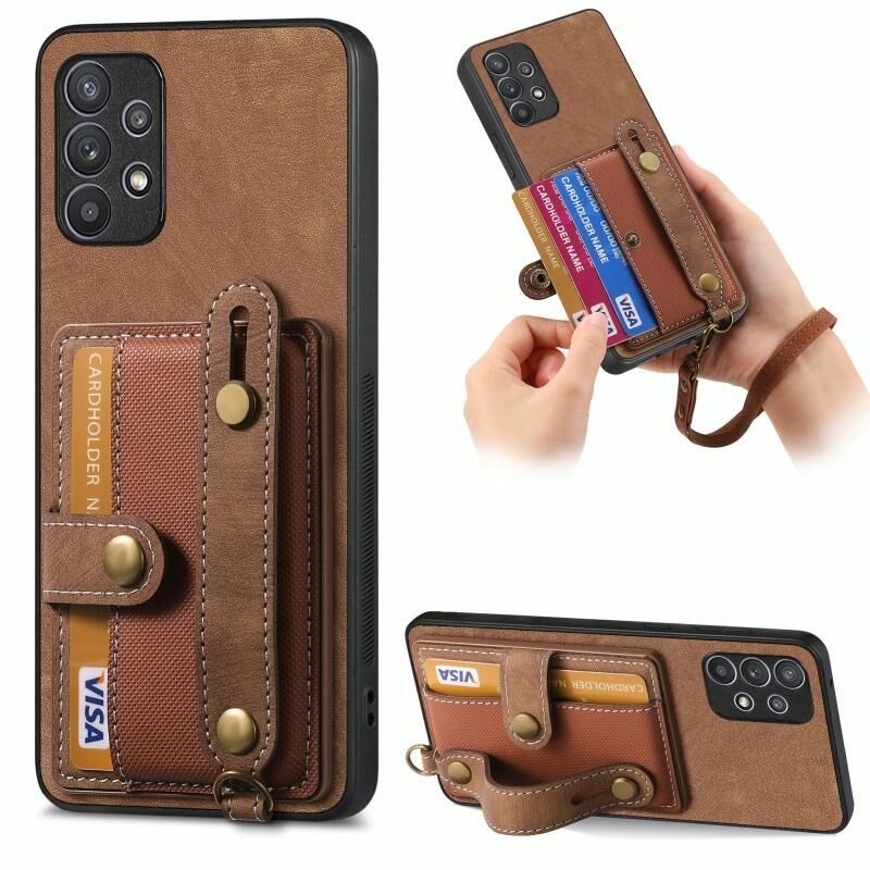Για Samsung Galaxy A32 5G/M32 5G Retro Cross Wristband πορτοφόλι δέρμα πίσω υπόθεση τηλεφώνου (καφέ)