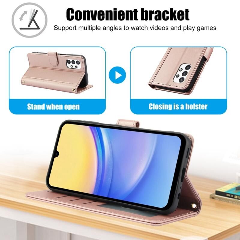 Για Samsung Galaxy A32 5G / M32 5G δέρμα αίσθηση καθαρό χρώμα κάρτα υποδοχές δερμάτινη θήκη τηλεφώνου με διπλή κορδόνι (Rose Gold)