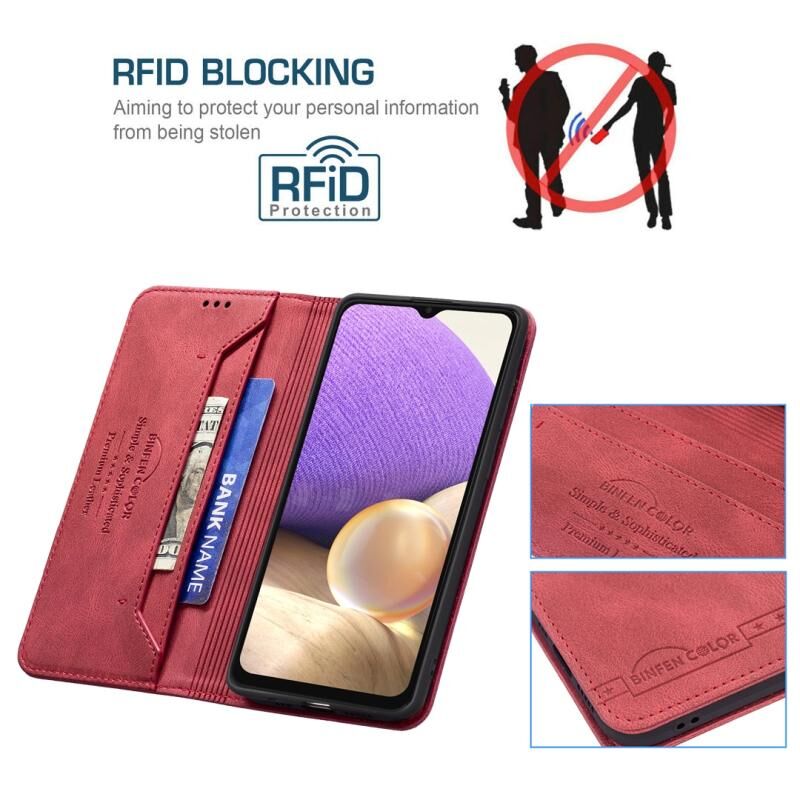 Για Samsung Galaxy A32 5G Μαγνητικό μπλοκάρισμα RFID Anti-Theft Δερμάτινη θήκη με θήκη & υποδοχές για κάρτες & πορτοφόλι (κόκκινο)
