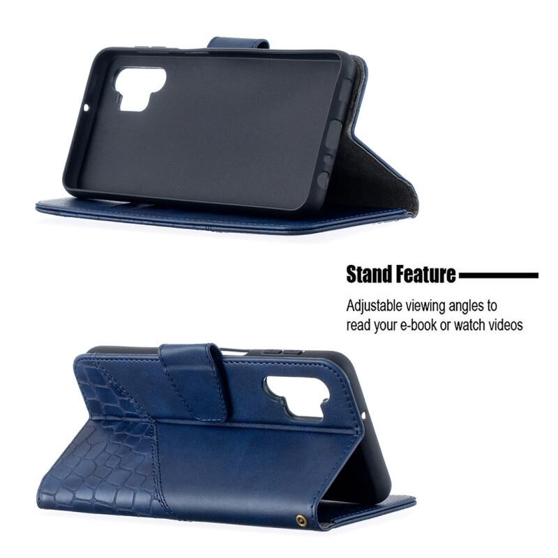 Θήκη Samsung Galaxy A32 5G Οριζόντια Δερμάτινη PU με Υφή Κροκόδειλου σε Αντίστοιχο Χρώμα με Θήκη Πορτοφολιού, Στήριξη & Θήκες Καρτών (Μπλε)