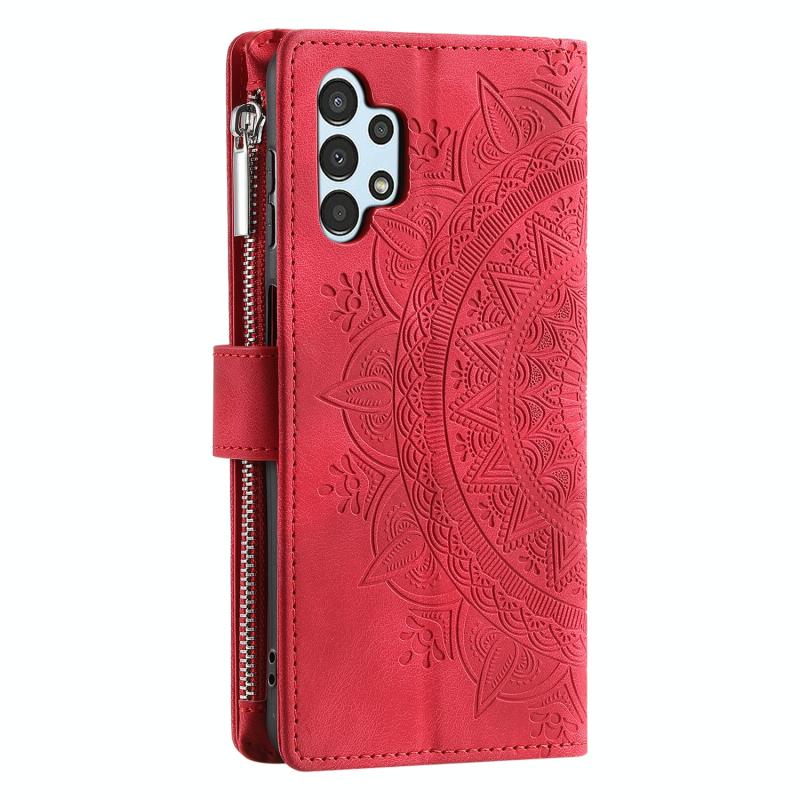 For Samsung Galaxy A32 5G Multi-Card Totem Zipper Leather Phone Case(Red)