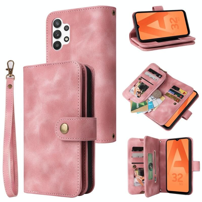 Για Samsung Galaxy A32 5G Πολυλειτουργική κάρτα Slot φερμουάρ πορτοφόλι δερμάτινη θήκη τηλεφώνου (Rose Gold)