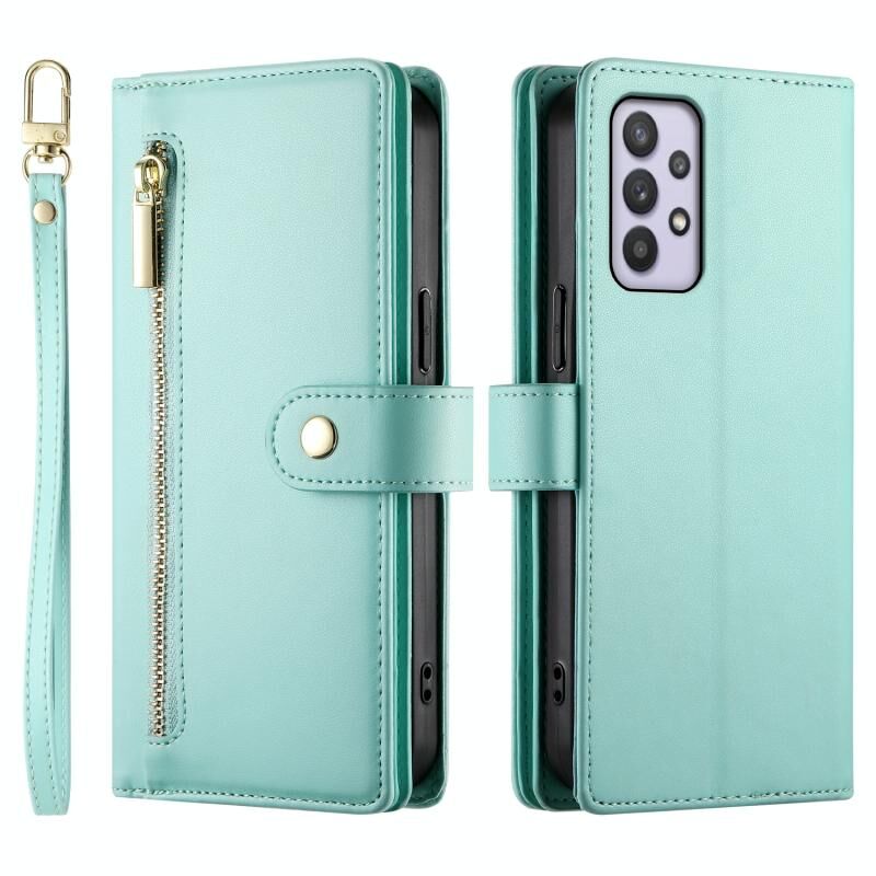 Για Samsung Galaxy A32 5G Nine Card-slot φερμουάρ πορτοφόλι τσάντα δερμάτινη θήκη τηλεφώνου (Μέντας πράσινο)