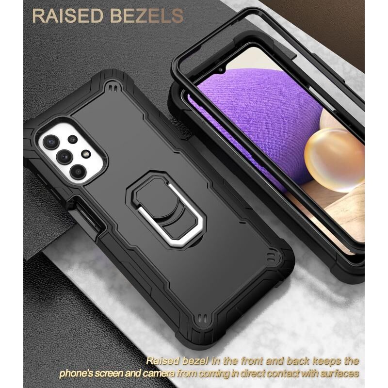 Για Samsung Galaxy A32 5G PC + καουτσούκ 3-στρώματα Αδιάβροχη προστατευτική θήκη με περιστρεφόμενη θήκη (Μαύρο)