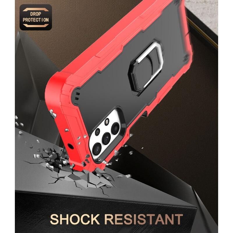 Για Samsung Galaxy A32 5G PC + καουτσούκ 3-στρώματα Αδιάβροχη προστατευτική θήκη με περιστρεφόμενη θήκη (κόκκινο + μαύρο)