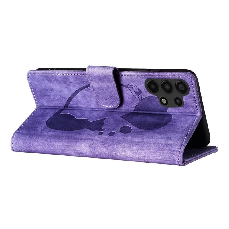 Θήκη κινητού Samsung Galaxy A32 5G από δέρμα με ανάγλυφο σχέδιο καρδιάς και γάτας (Πορτοκαλί)