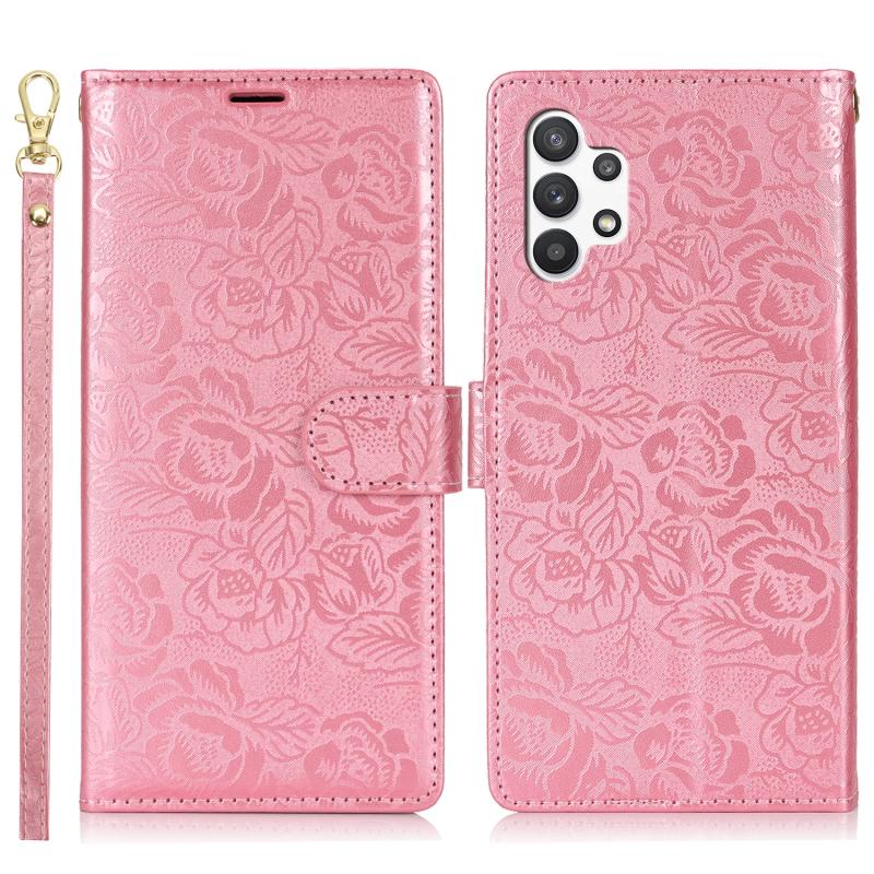 For Samsung Galaxy A32 5G Peony Flowers Imprint Leather Phone Case(Pink)