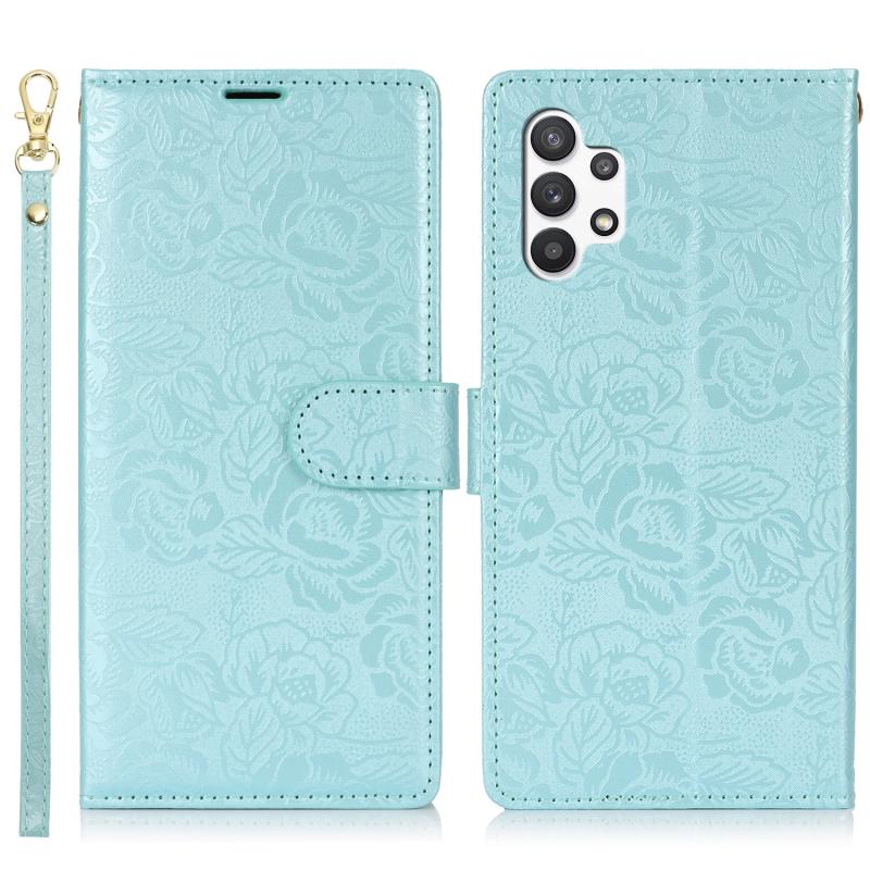 For Samsung Galaxy A32 5G Peony Flowers Imprint Leather Phone Case(Sky Blue)