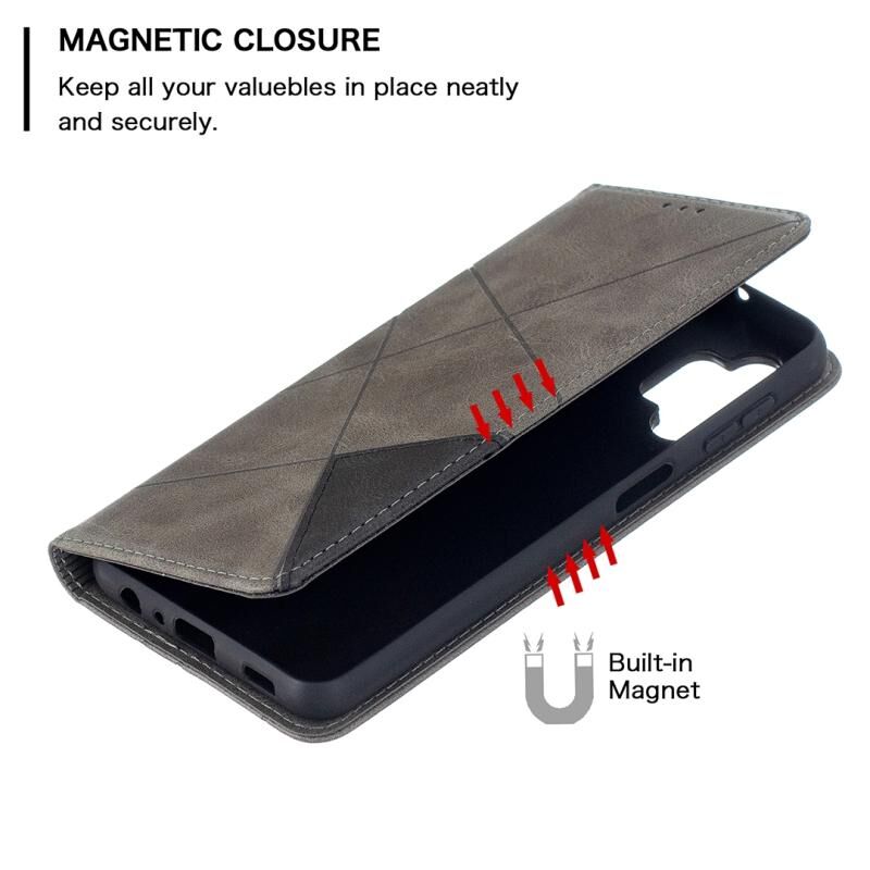 Για Samsung Galaxy A32 5G Prismatic Αόρατη μαγνητική οριζόντια Flip δερμάτινη θήκη με θήκη & υποδοχές για κάρτες & πλαίσιο φωτογραφιών (γκρι)