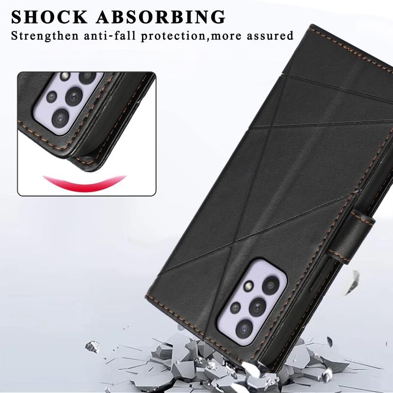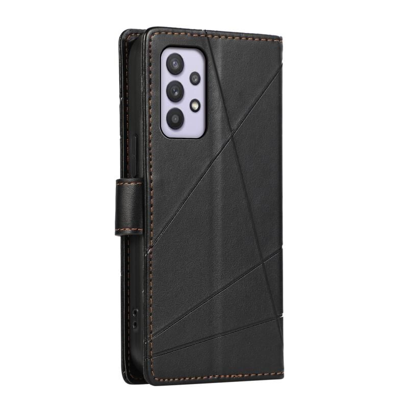 Θήκη τηλεφώνου για Samsung Galaxy A32 5G από γνήσιο δέρμα PU με ανάγλυφη υφή και λεπτή γραμμή (Μαύρο)