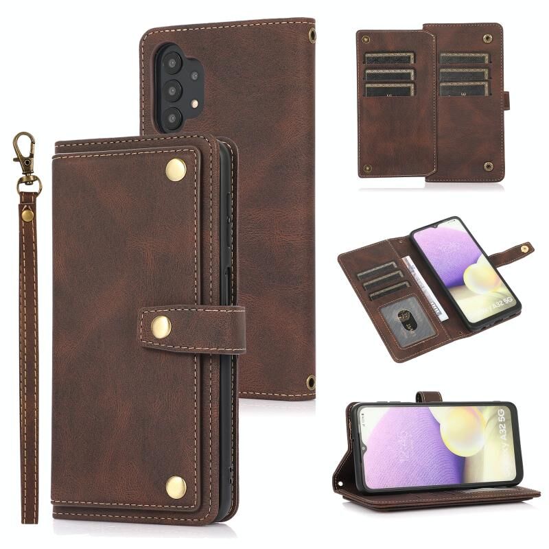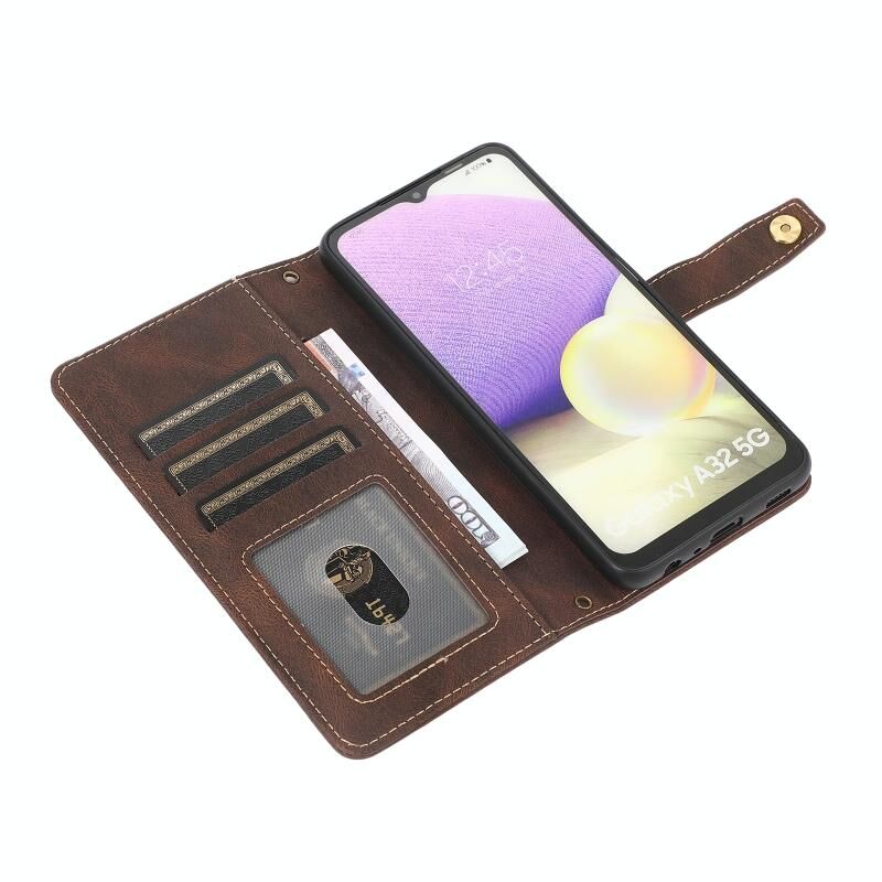 Για Samsung Galaxy A32 5G PU + TPU Οριζόντια Flip δερμάτινη θήκη με θήκη & υποδοχή για κάρτες & πορτοφόλι & κορδόνι (καφέ)
