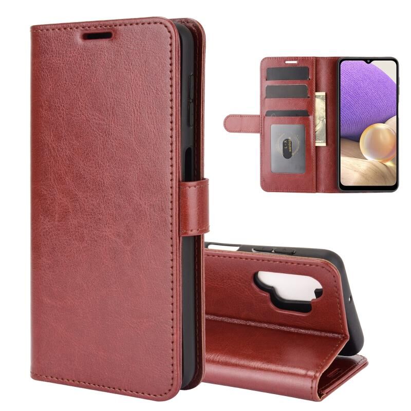 Για Samsung Galaxy A32 5G R64 Υφή ενιαία οριζόντια Flip προστατευτική θήκη με υποδοχή & υποδοχές για κάρτες & πορτοφόλι & κορνίζα φωτογραφιών (Καφέ)