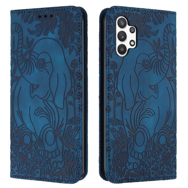 Θήκη τηλεφώνου Samsung Galaxy A32 5G με ανάγλυφο σχέδιο ρετρό ελέφαντα από δέρμα (Μπλε)
