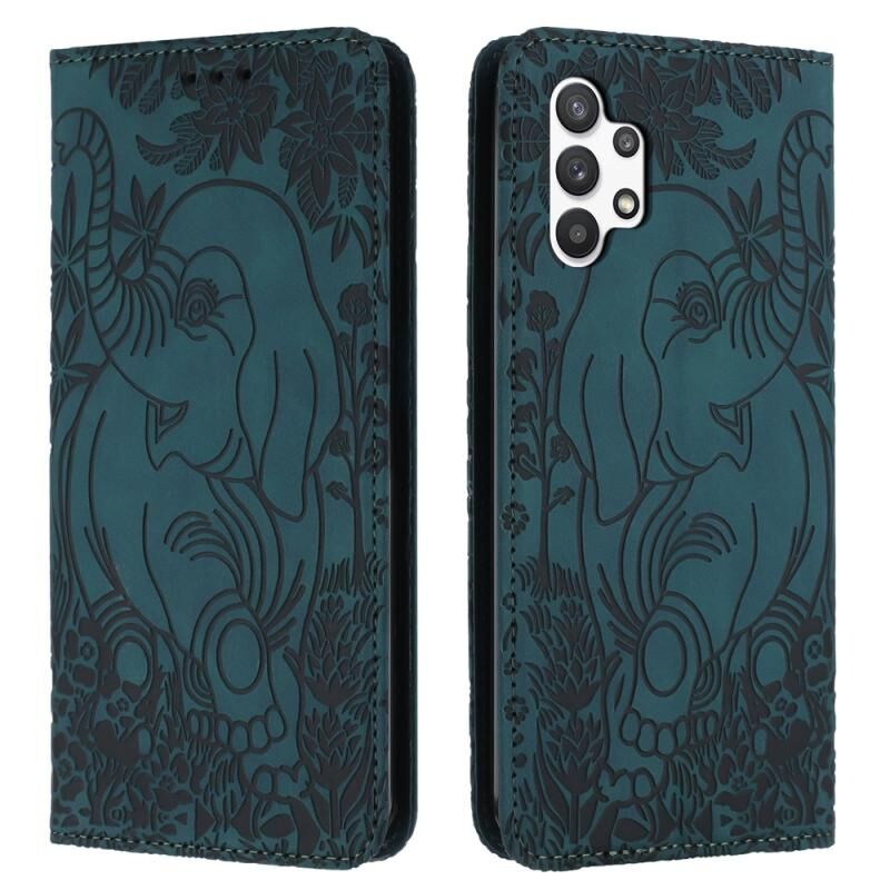 Θήκη τηλεφώνου Samsung Galaxy A32 5G με ανάγλυφο σχέδιο ρετρό ελέφαντα από δέρμα (Μπλε)