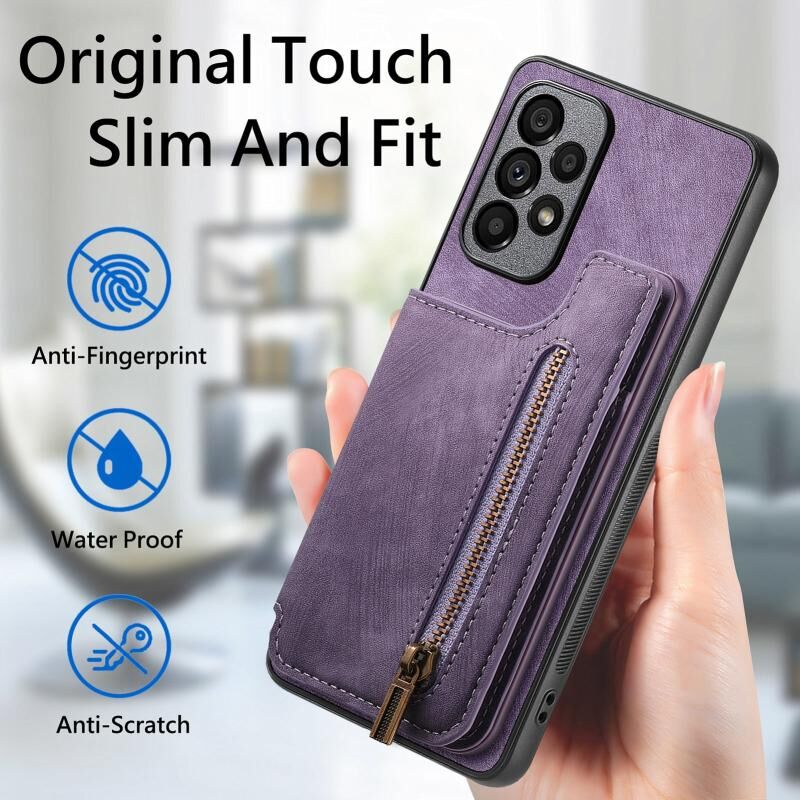Για Samsung Galaxy A32 5G Ρετρό δέρμα φερμουάρ πορτοφόλι πίσω θήκη τηλεφώνου (μωβ)